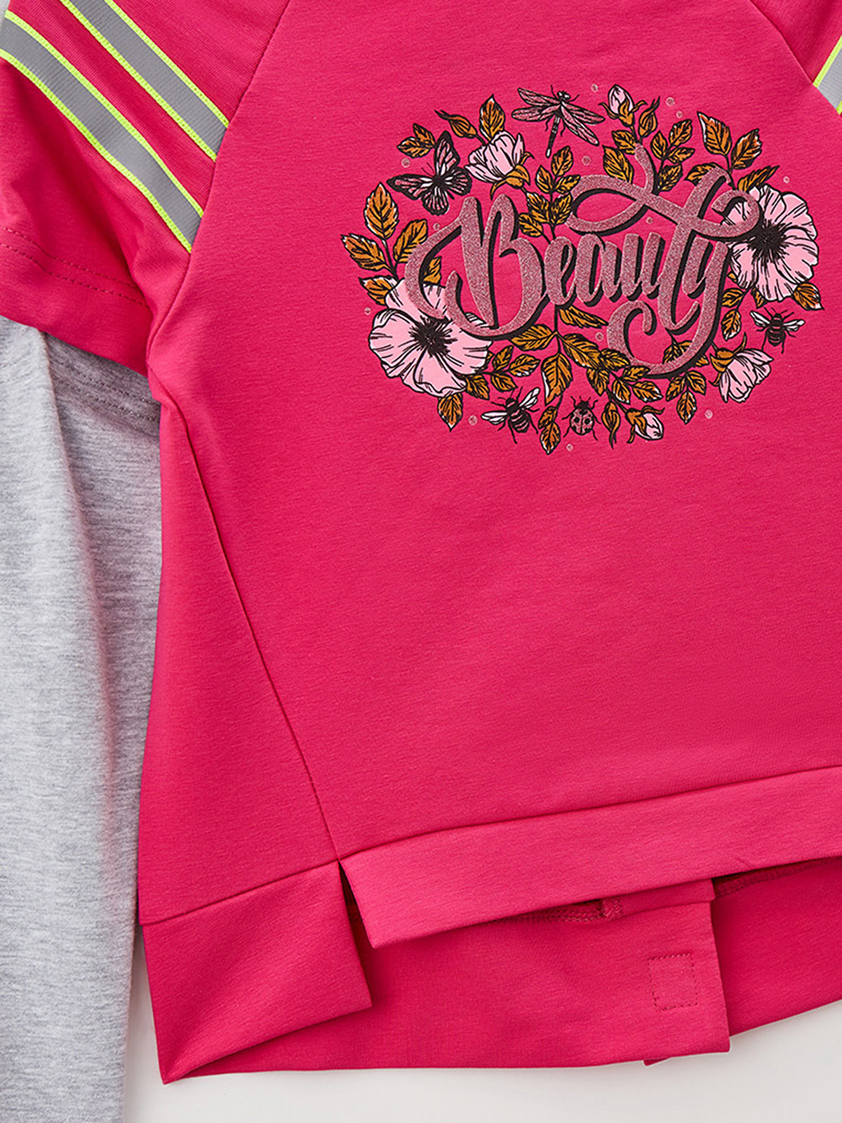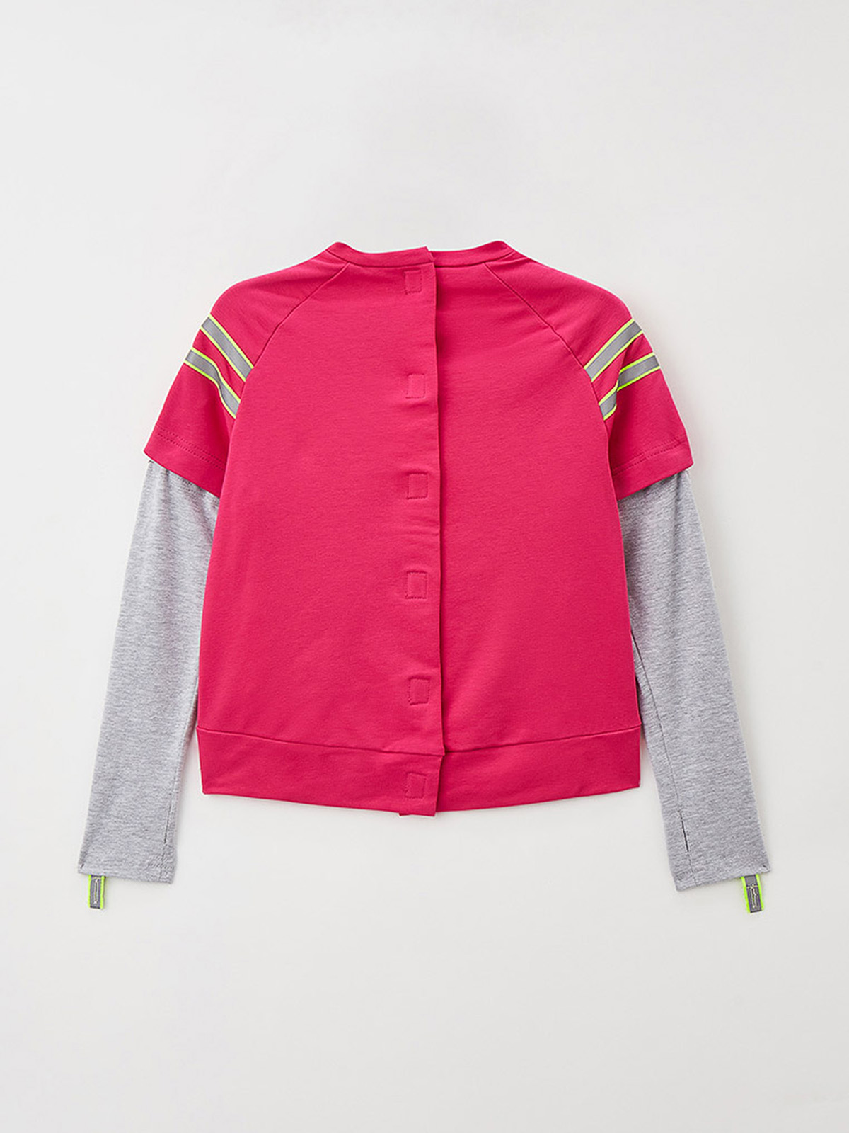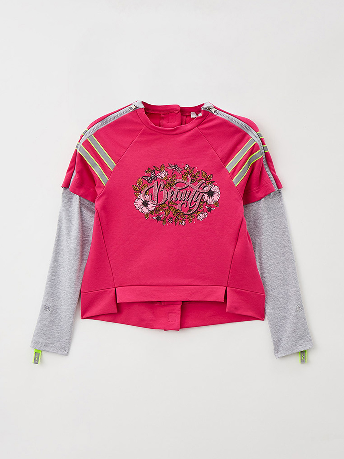 Модная толстовка-трансформер из футера свободного силуэта. Конструкция адаптирована для сидячего положения: передняя часть изделия короче обычной с разрезами, которые обеспечивают эстетичный вид в сидячем положении, чтобы изделие не затягивало, и не образовывались складки. Спинка, удлинённая до линии сидения, распашная для удобства одевания ребенка с застёжками на «липучки». Верхние части рукавов с застёжками на разъёмные молнии для удобства надевания при спастике рук, декорированы рефлективной тесьмой. Нижние удлинённые части рукавов с функцией митенок и отверстиями для больших пальцев, подворачиваются и фиксируются на паты из рефлективной тесьмы. На переде стильный принт, отлично дополняющий изделие.