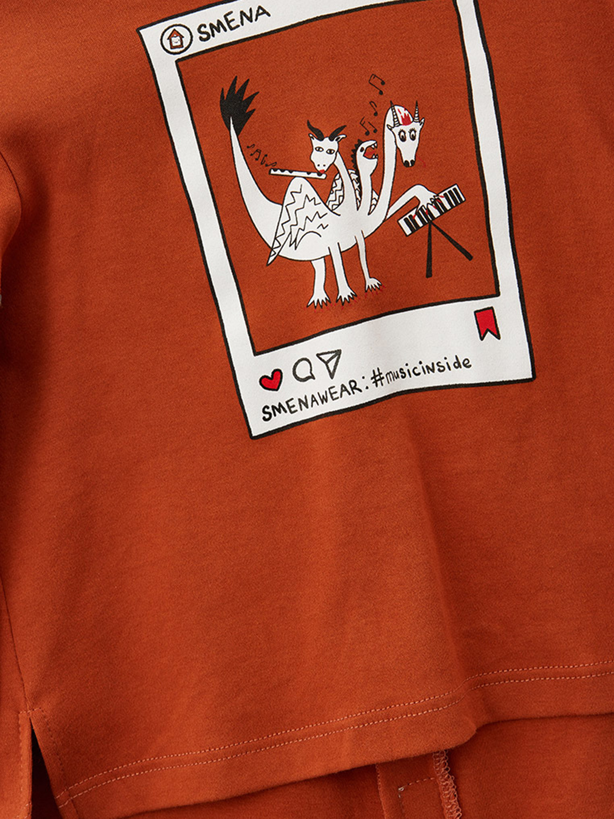 Лонгслив из кулирной глади. Материал изделия хорошо пропускает воздух и отводит влагу за счет повышенного содержания хлопка. Спинка и рукава распашные с застежкой на «липучки» для удобства одевания ребёнка. Рукава декорированы рефлективной тесьмой, которая обеспечивает безопасность ребенка. На переде изделия стильный принт, отлично дополняющий изделие. Конструкция адаптирована для сидячего положения. Передняя часть модели короче обычной, а спинка удлинена до линии сидения, с разрезами по бокам, которые обеспечивают эстетичный вид в сидячем положении, чтобы изделие не затягивало, и не образовывались складки.