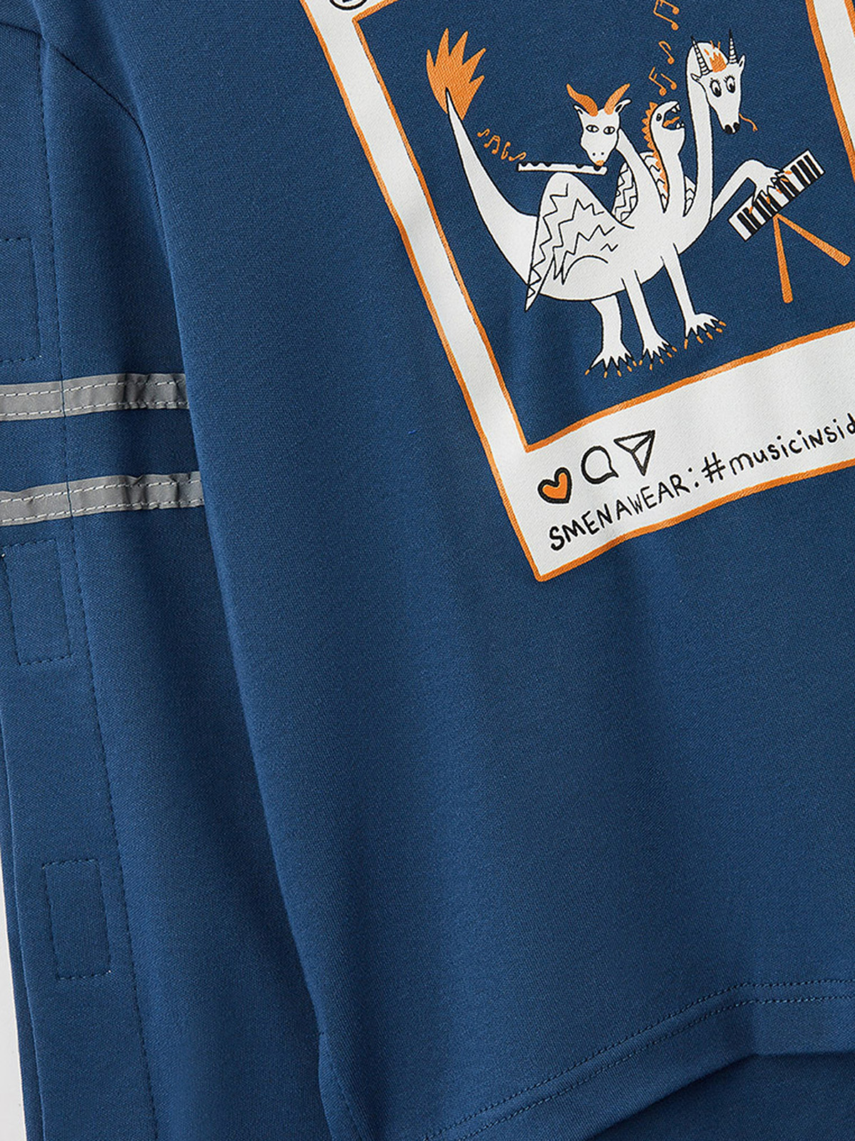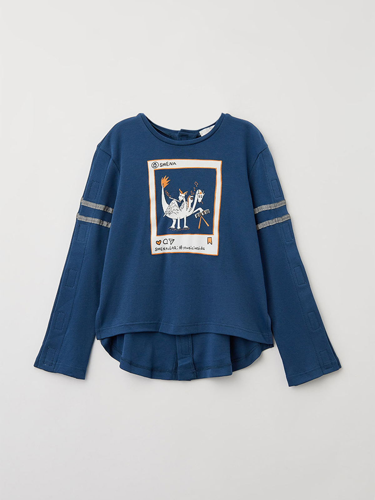 Лонгслив из кулирной глади. Материал изделия хорошо пропускает воздух и отводит влагу за счет повышенного содержания хлопка. Спинка и рукава распашные с застежкой на «липучки» для удобства одевания ребёнка. Рукава декорированы рефлективной тесьмой, которая обеспечивает безопасность ребенка. На переде изделия стильный принт, отлично дополняющий изделие. Конструкция адаптирована для сидячего положения. Передняя часть модели короче обычной, а спинка удлинена до линии сидения, с разрезами по бокам, которые обеспечивают эстетичный вид в сидячем положении, чтобы изделие не затягивало, и не образовывались складки.