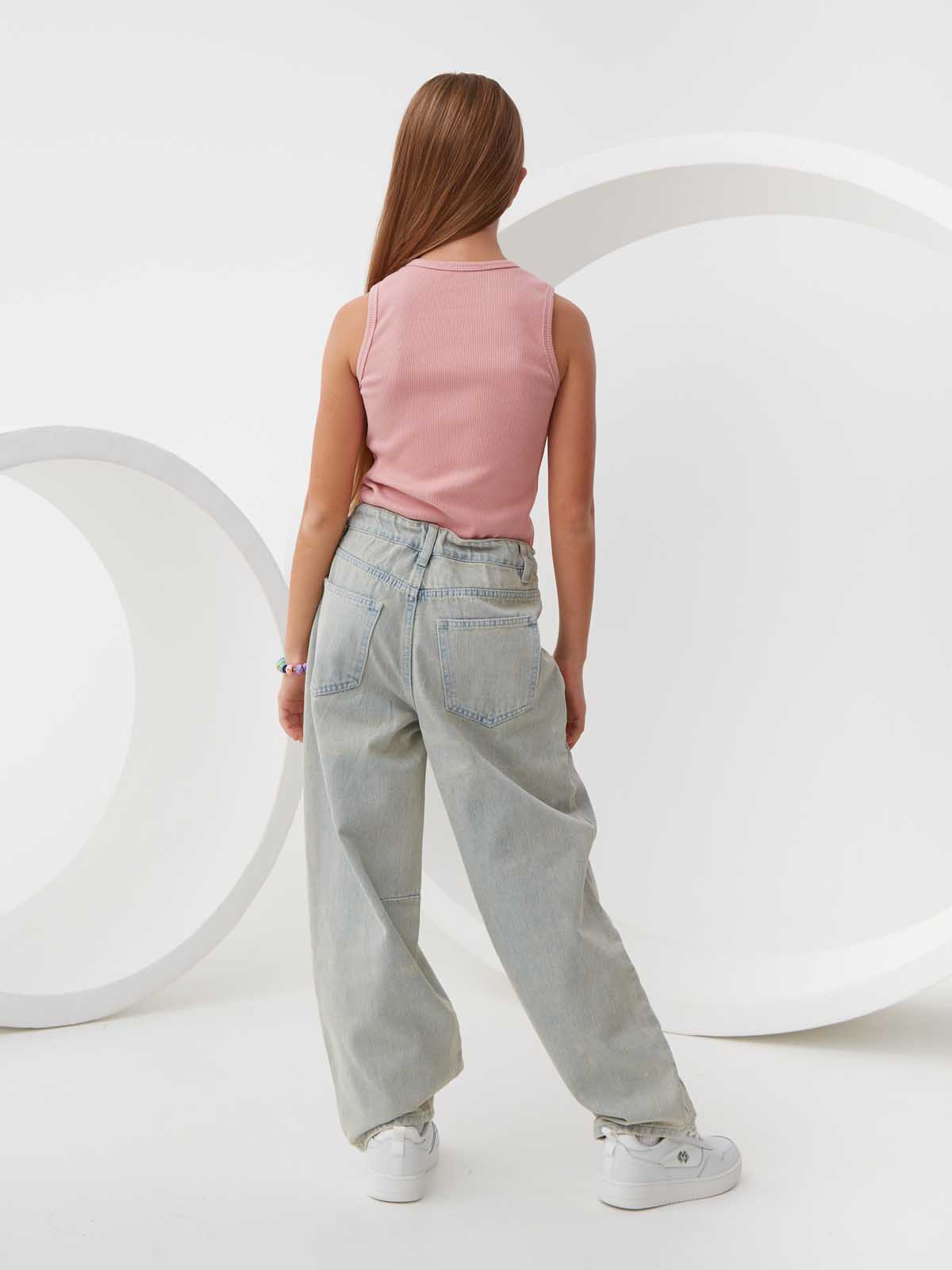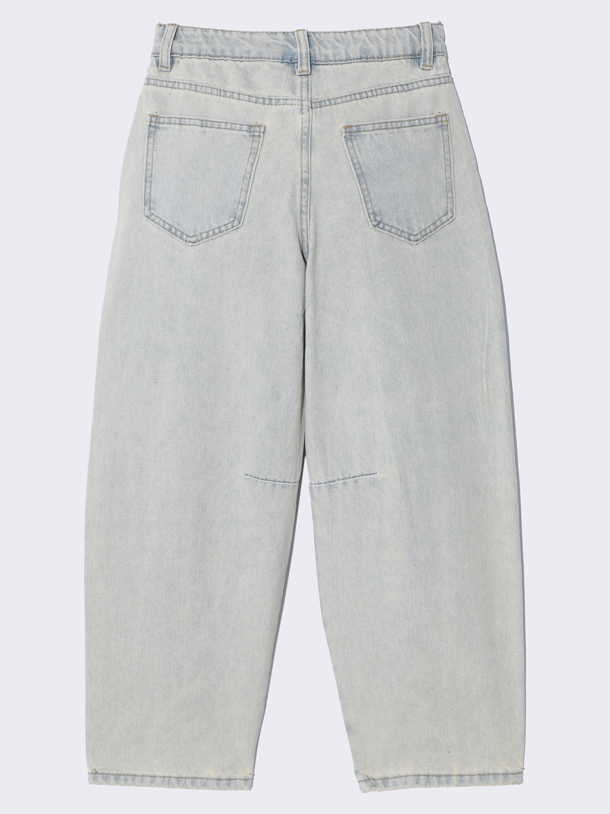 Джинсы Slouchy с вытачками на коленях и по низу. Плотный деним из 100% хлопка с винтажной стиркой и потертостями. Свободный крой со слегка зауженными к низу брючинами полной длины. Высокая посадка талии и пояс с внутренней регулируемой резинкой. Застежка на молнию и пуговицу, шлевки для ремня, пять карманов.