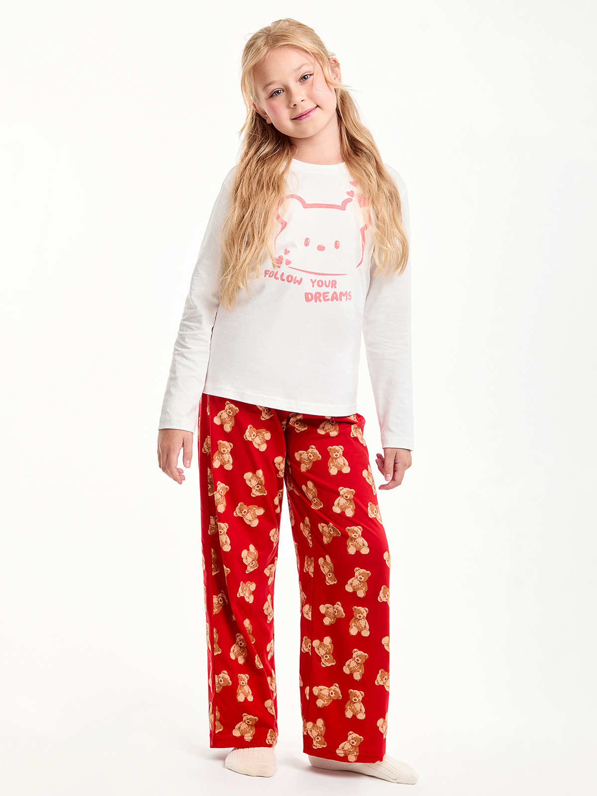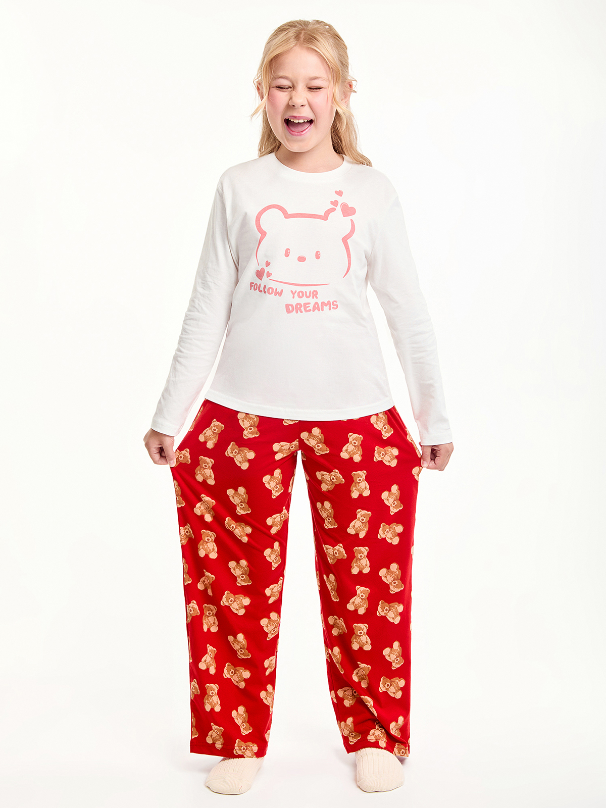 Пижама для девочек SMENA сшита из качественного 100% хлопка, изделие мягкое и приятное к телу, в ней комфортно в любое время года. Свободный, полуприлегающий силуэт. Нижняя часть комплекта сшита из принтованного хлопка со стильным дизайном, модный принт на полочке верхней части дополняет задуманный образ мультяшных персонажей. Не просто комфортная, но, и стильная пижама станет любимой вещью для домашнего пользования.
