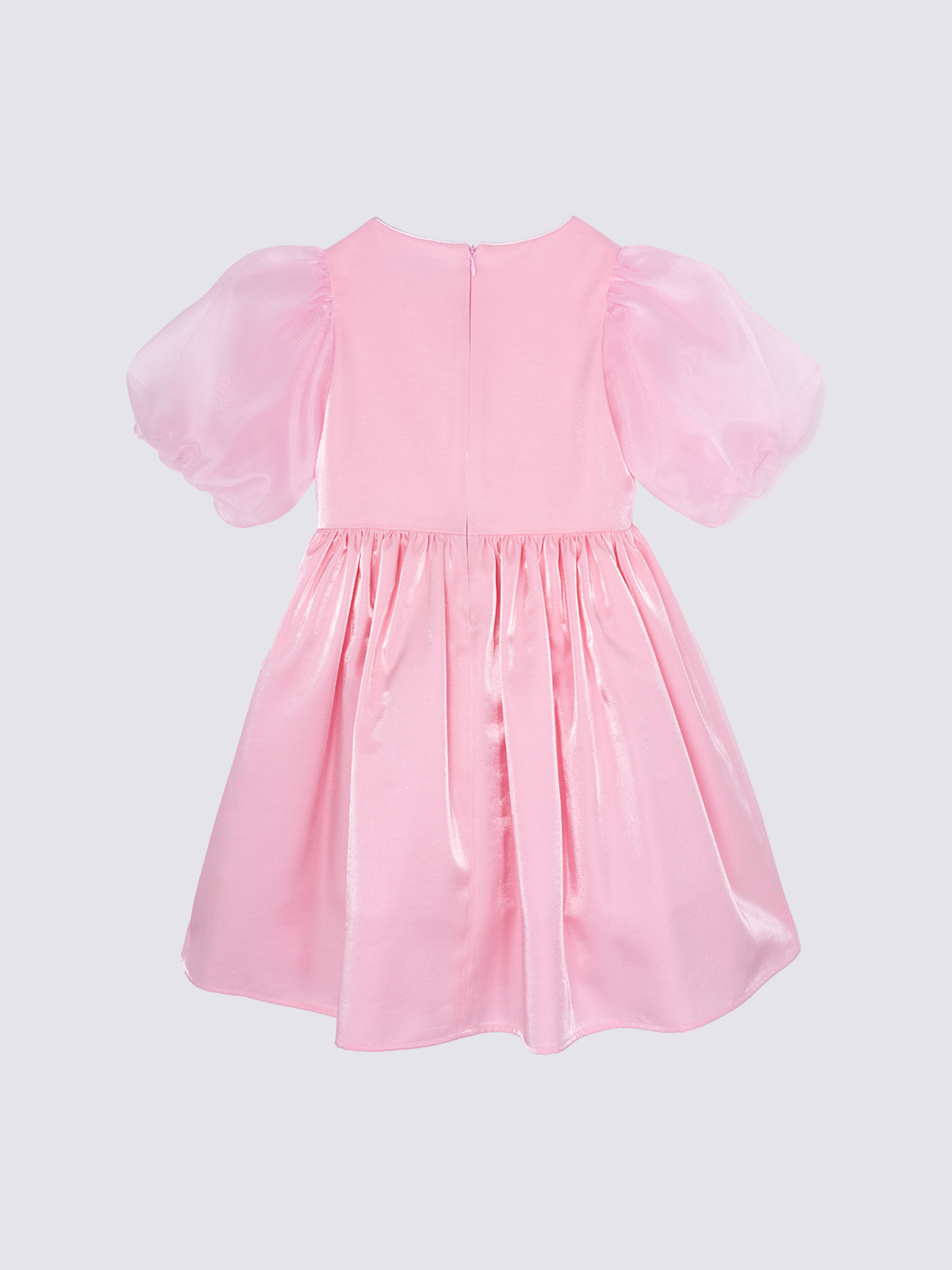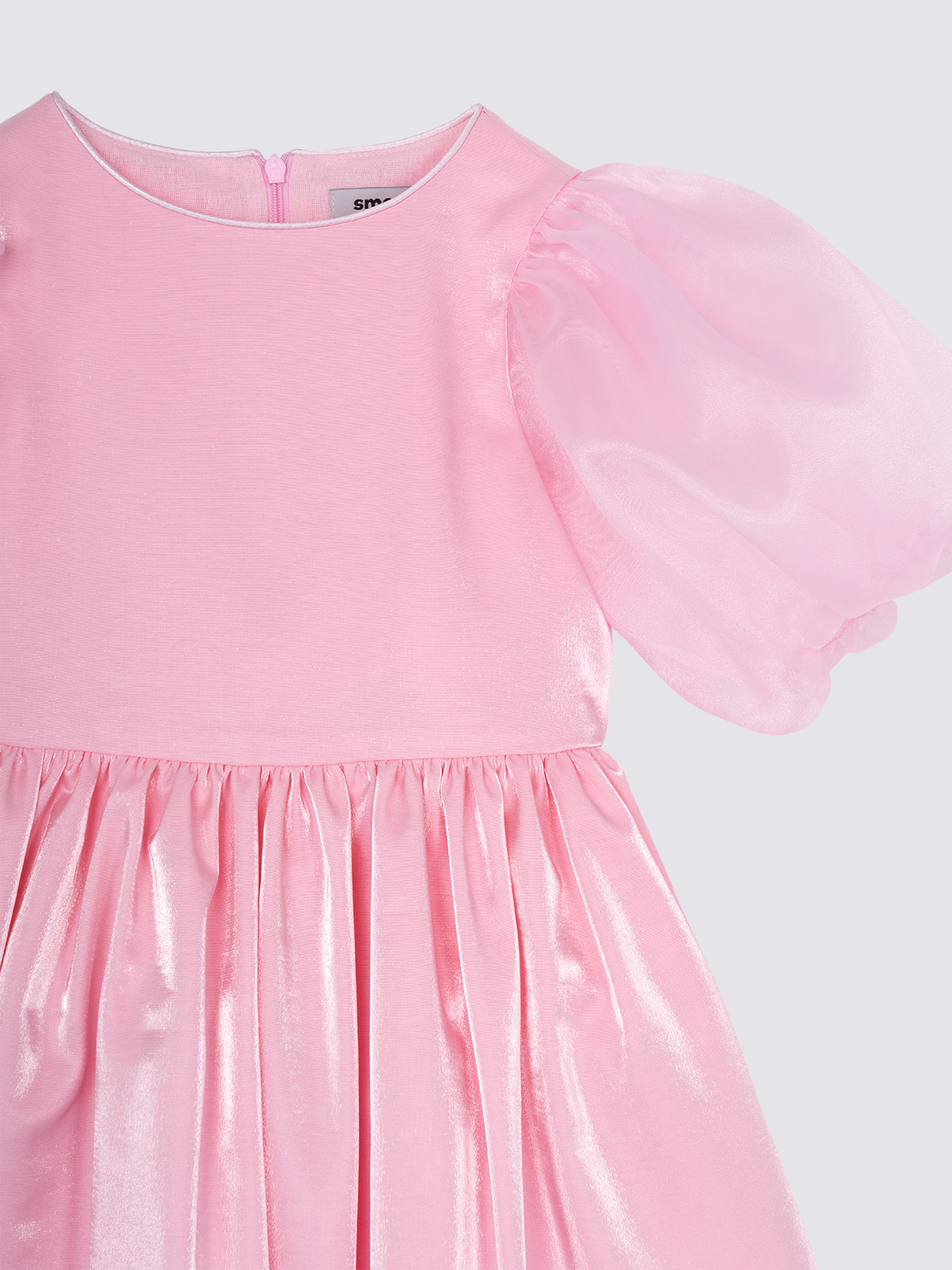 Силуэт и крой: оверсайз с пышной юбкой и объёмными короткими рукавами, создающими эффектное и торжественное звучание образа.