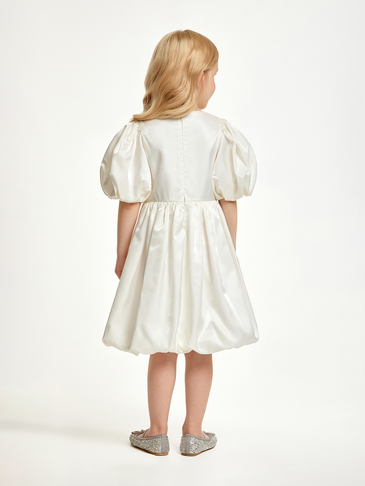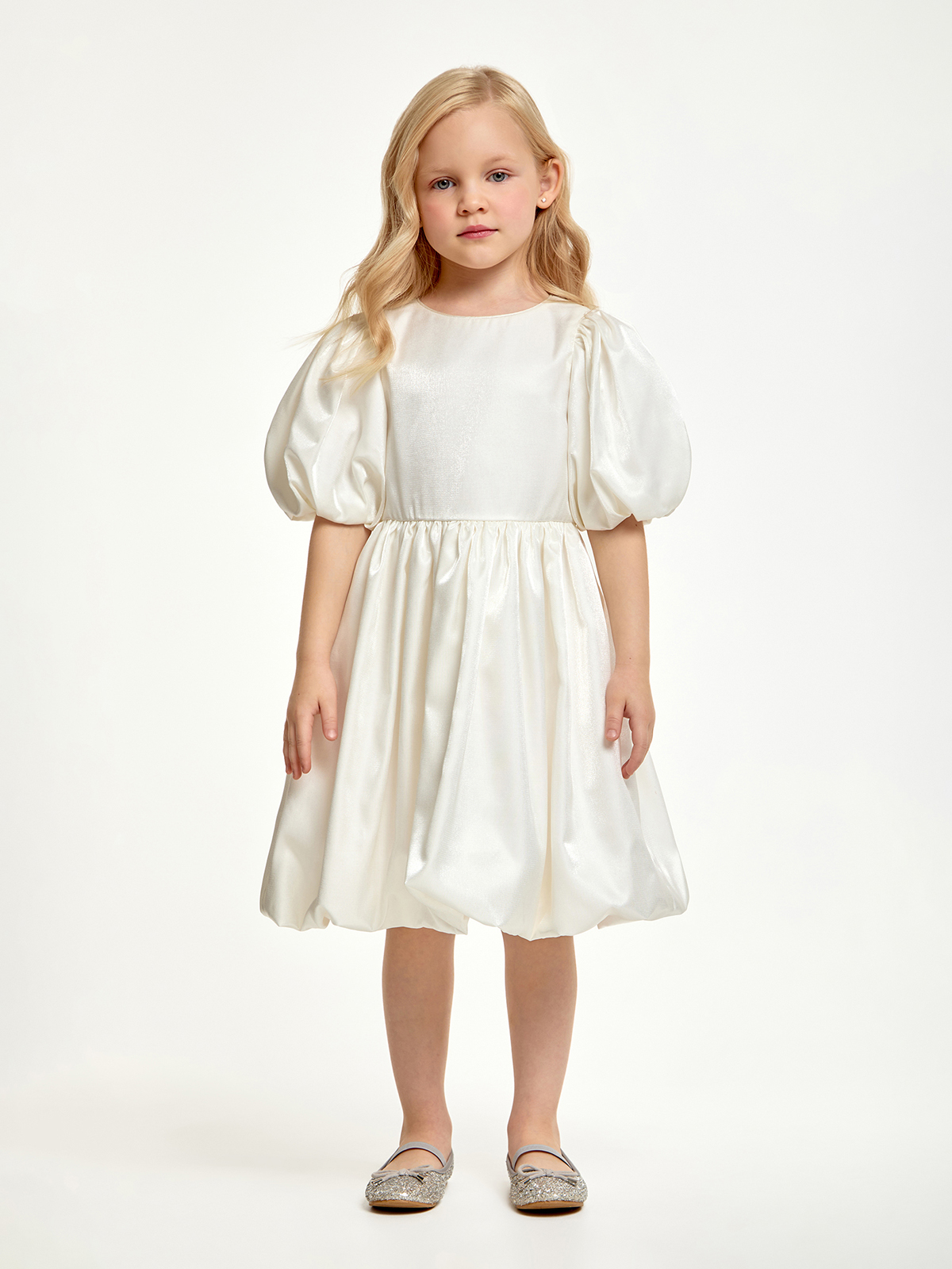 Нарядное платье для девочки — идеальный вариант для праздничных мероприятий, утренников, выпускного или дня рождения. Силуэт и крой: оверсайз с пышной юбкой и объёмными короткими рукавами, создающими эффектное и торжественное звучание образа. Особенности: платье легко надевать и снимать, не с открытыми плечами, без блёсток, пайеток и кружев — идеально для детей, которым важен комфорт.