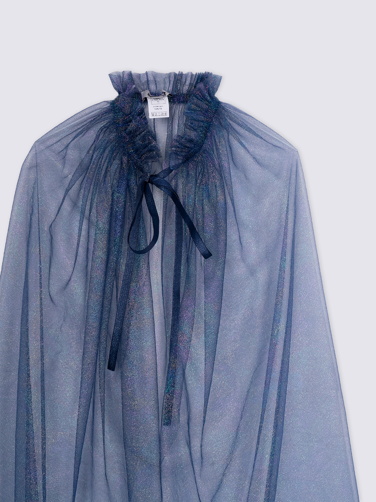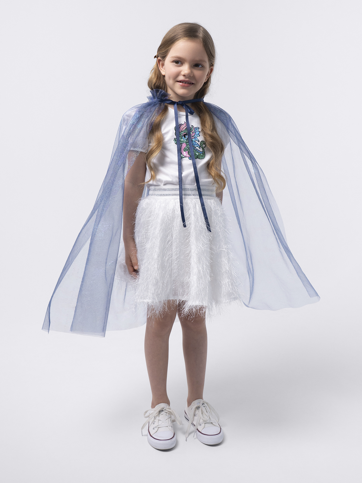 Воздушная переливающаяся накидка — то, что нужно юной моднице, чтобы весело играть со своими подружками в принцесс и веселиться на новогоднем утреннике. Завязки на палантине помогут отрегулировать ее по размеру и не потерять во время активных игр. Пышная и блестящая накидка из сетки станет великолепным дополнением для любого наряда и сделает из девочки настоящую сказочную фею.