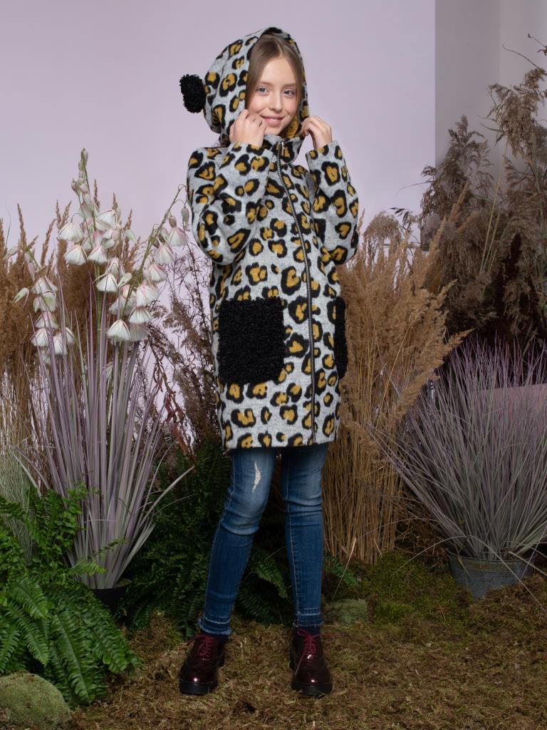Супер модное пальто прямого силуэта с капюшоном декоррированым съемными помпонами. Накладные карманы из искусственного меха контрасного цвета, расположенные на полочках, являются основной яркой деталью образа. Прямая застежка на молнию по всей длине зрительно вытягивает силуэт..