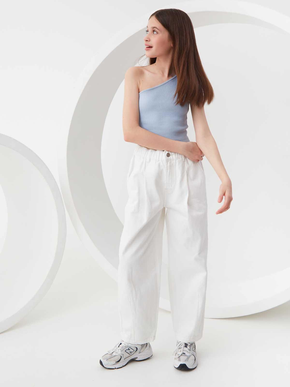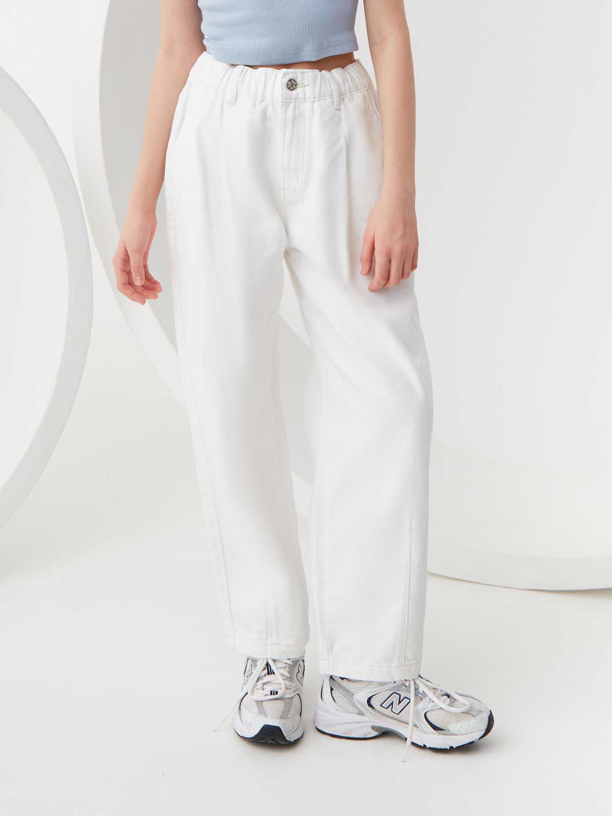 Джинсы Slouchy с вытачками по низу. Плотный деним из 100% хлопка. Свободный крой со слегка зауженными к низу брючинами полной длины. Высокая посадка талии и пояс с внутренней регулируемой резинкой. Застежка на молнию и пуговицу, шлевки для ремня, пять карманов. Представлены в 3 цветах – светло-голубой, табачный, молочный.