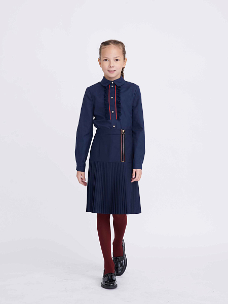 Модная блузка из смесового хлопка полуприлегающего силуэта с отложным воротником и длинными рукавами. Высокое содержание хлопка в составе обеспечивает отличную воздухопроницаемость и комфорт в повседневной носке. Полочка блузки декорирована тесьмой-оборкой и контрастной лентой. Застежка центральная на планку и пуговицы контрастного цвета.