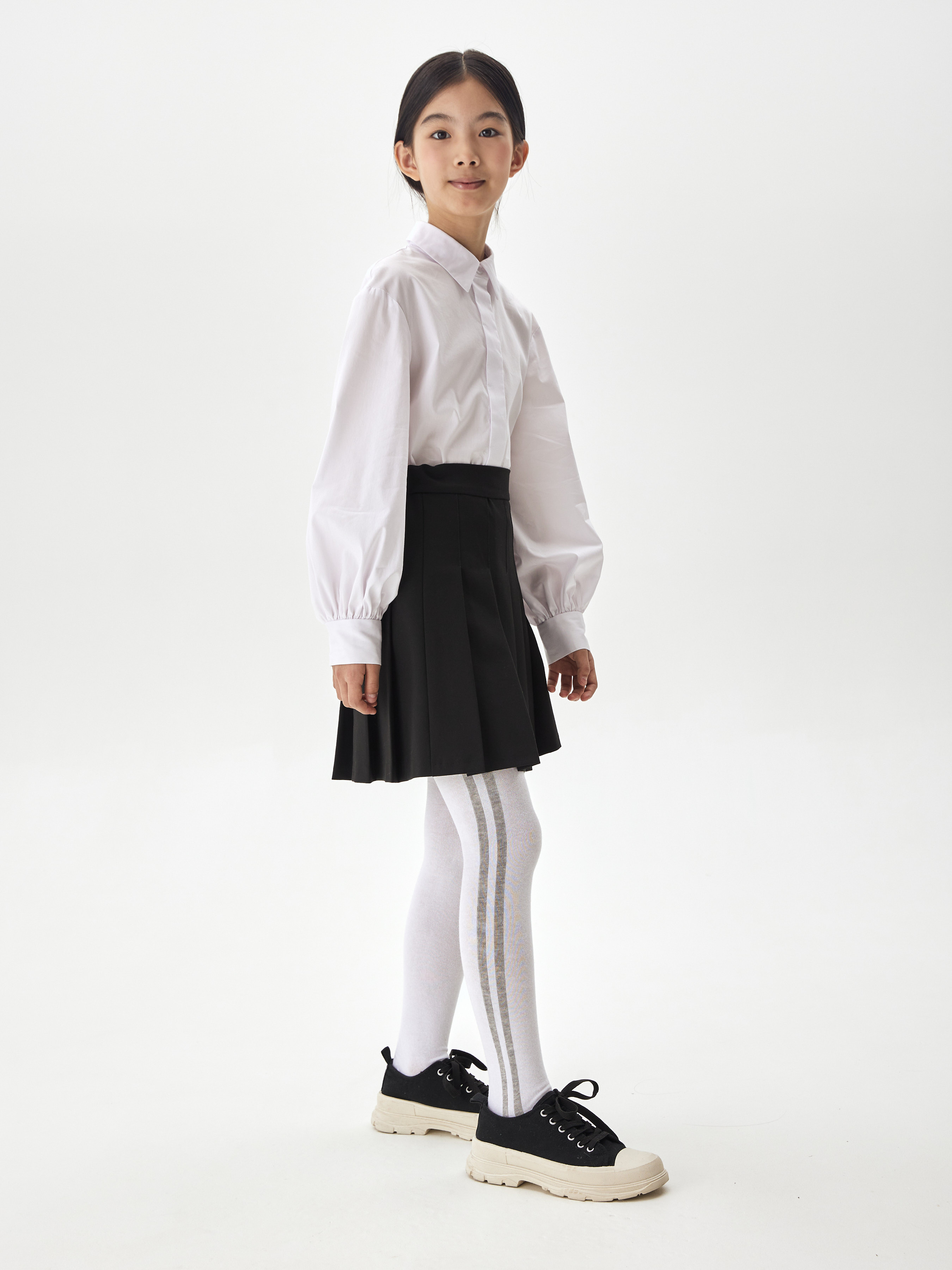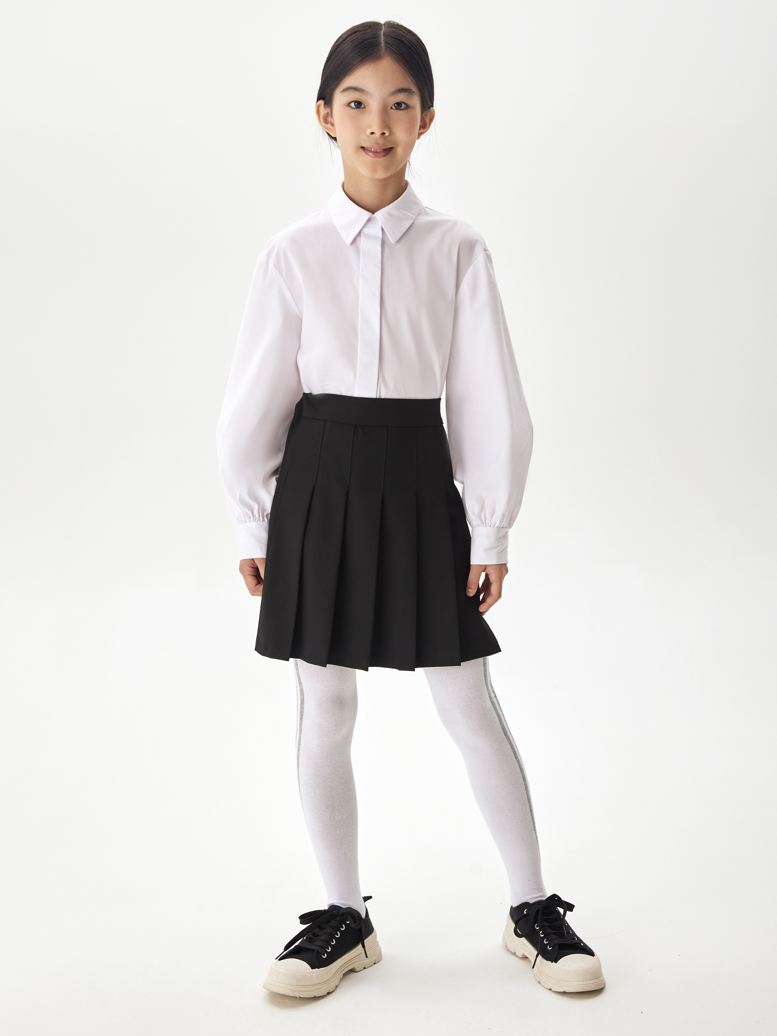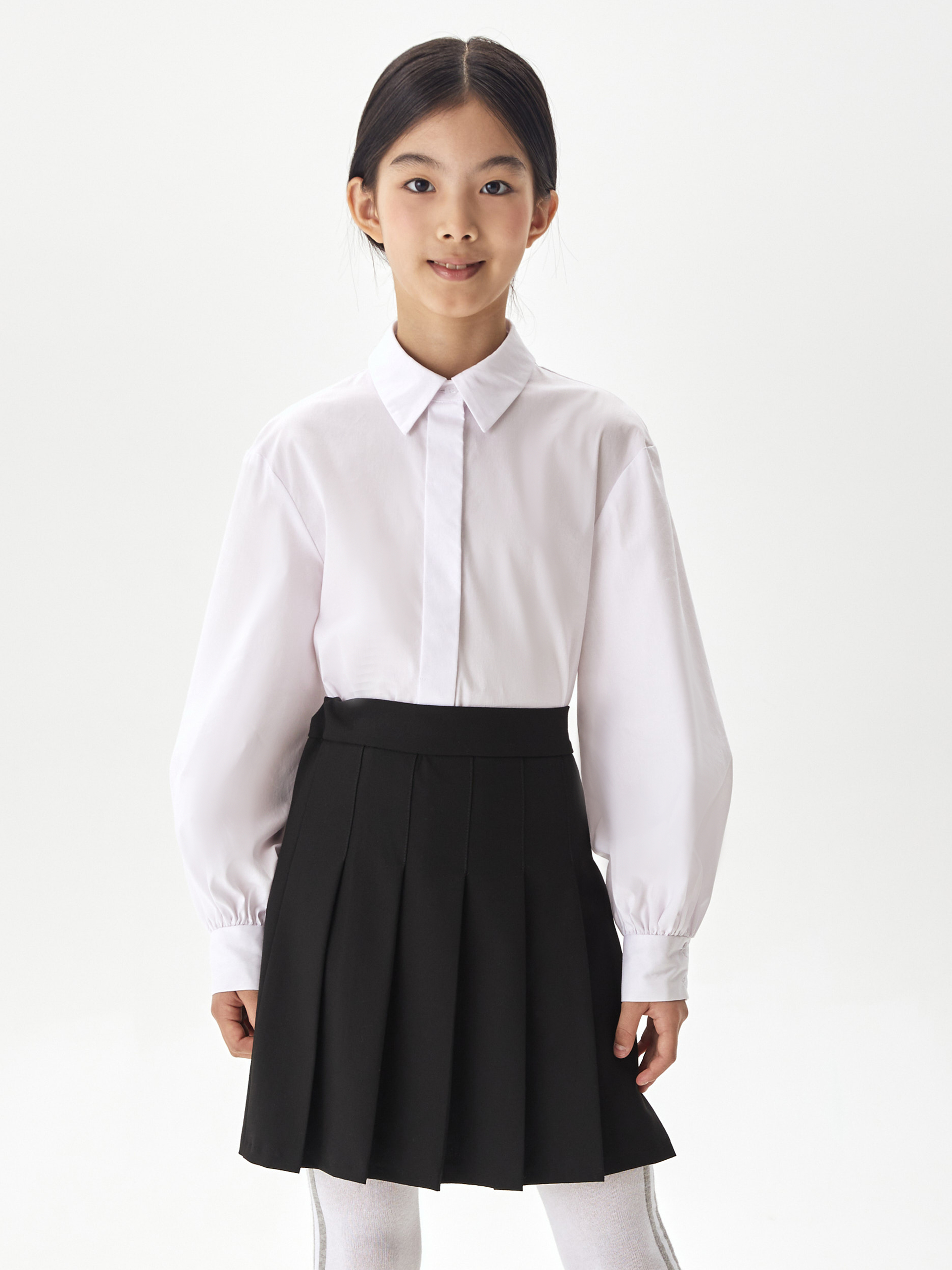 Стильная блузка для подростков из смесового хлопка с отложным воротником и длинными рукавами. Высокое содержание хлопка в составе обеспечивает отличную воздухопроницаемость и комфорт в повседневной носке. Объемный к низу рукав на сборке и манжете. Супатная застежка по центру. Отличный вариант с брюками или юбкой на каждый день.