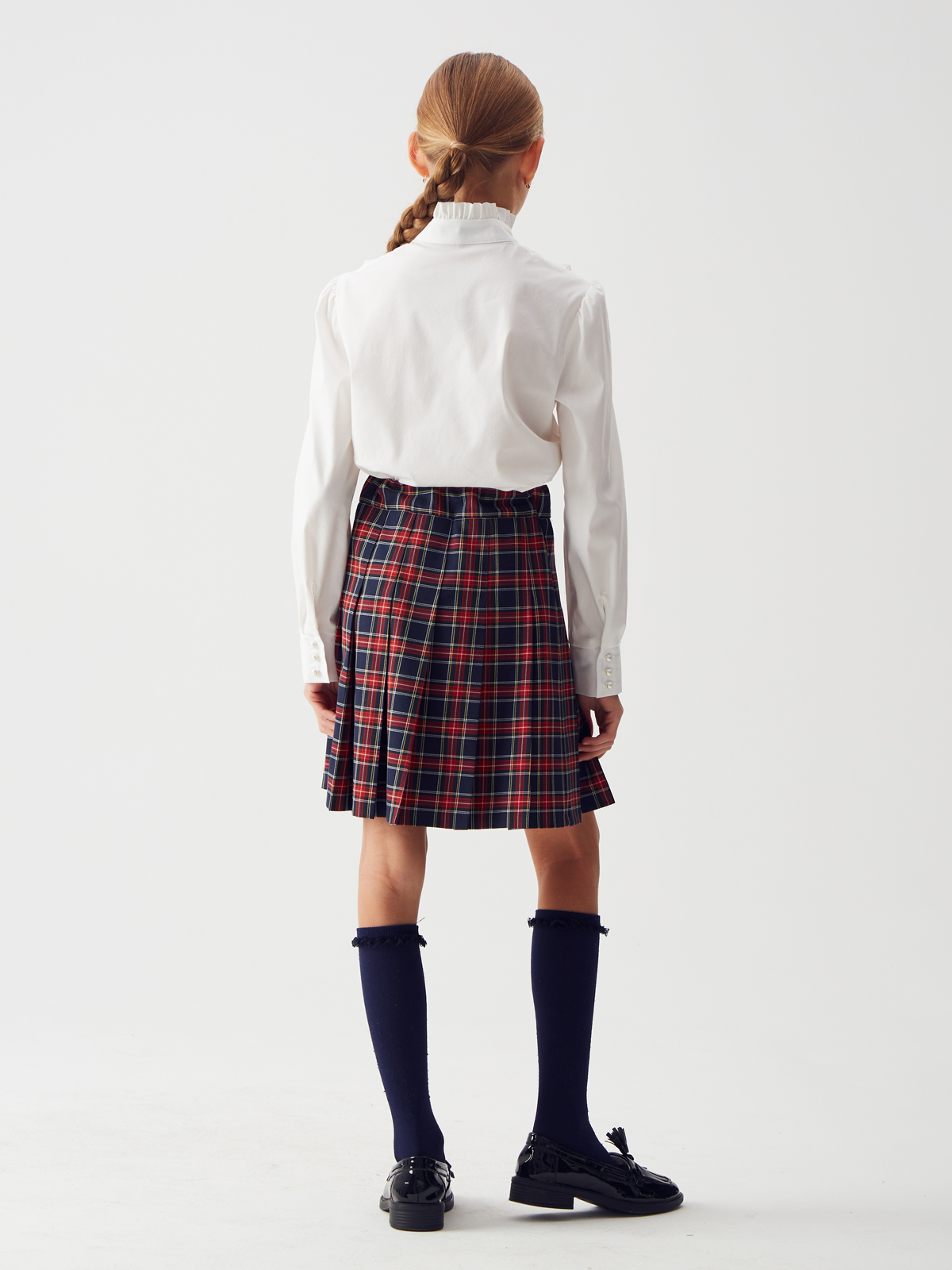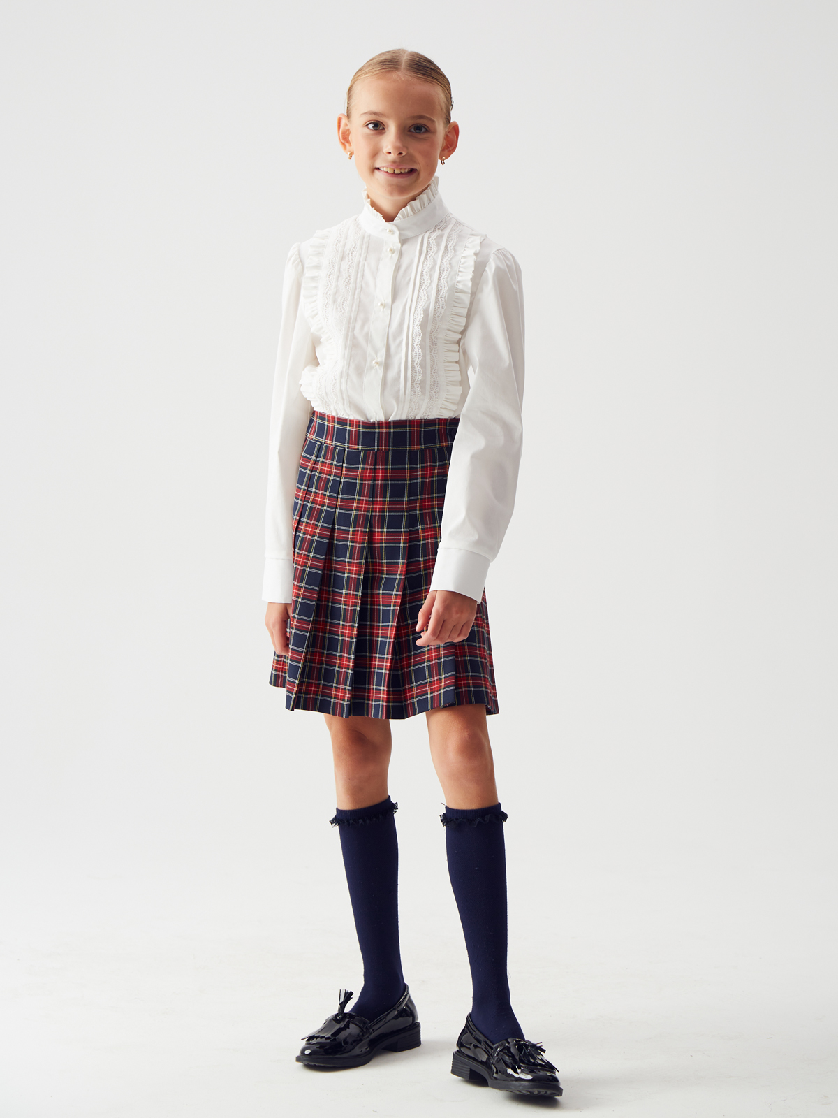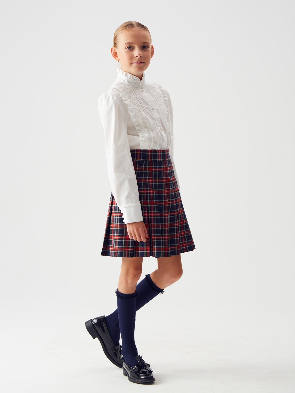 Романтичная блузка из смесового хлопка полуприлегающего силуэта с кружевным воротником и ажурным кружевом . Высокое содержание хлопка в составе обеспечивает отличную воздухопроницаемость и комфорт в повседневной носке. Отличное решение для создания романтичных образов маленькой модницы.