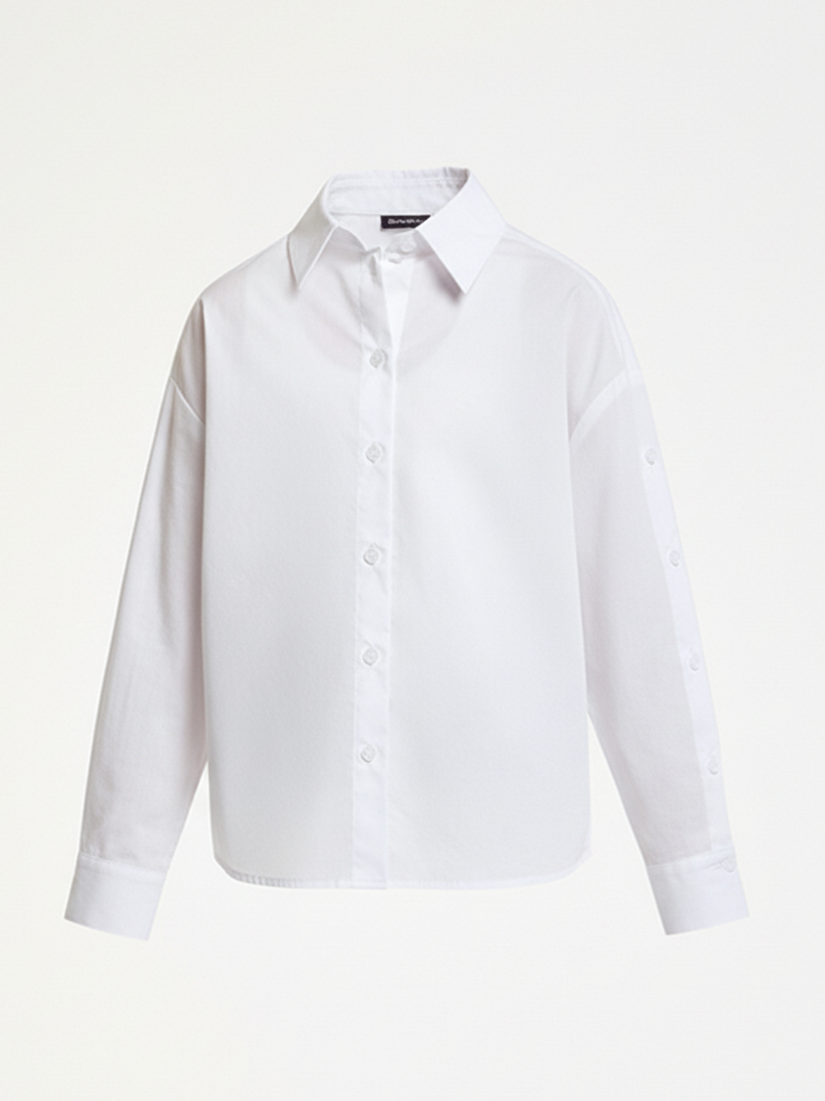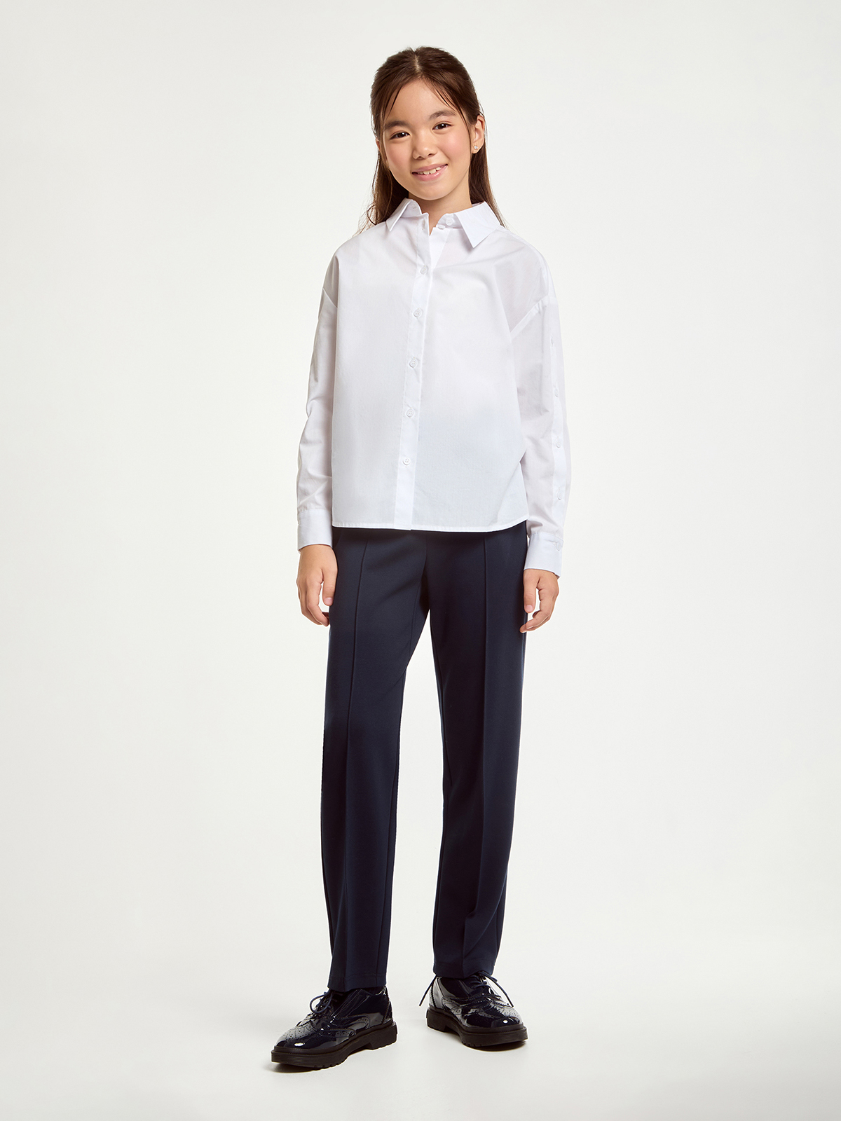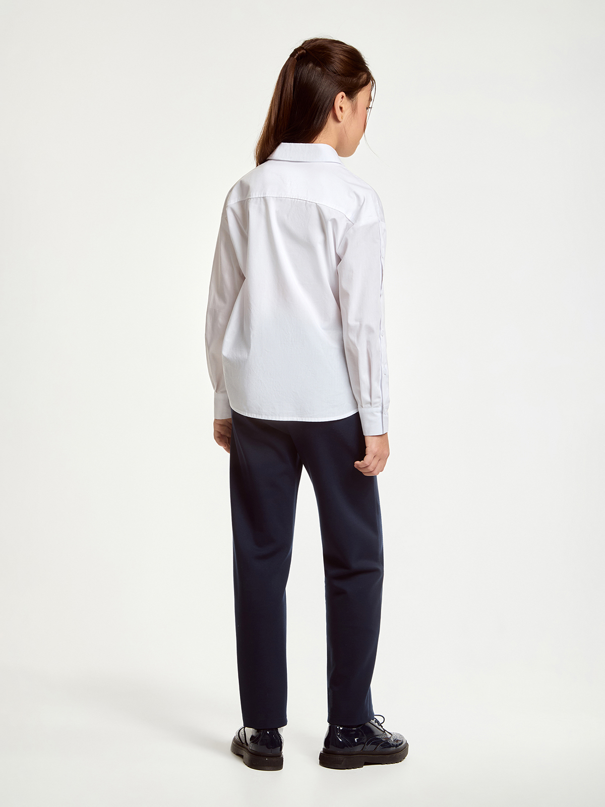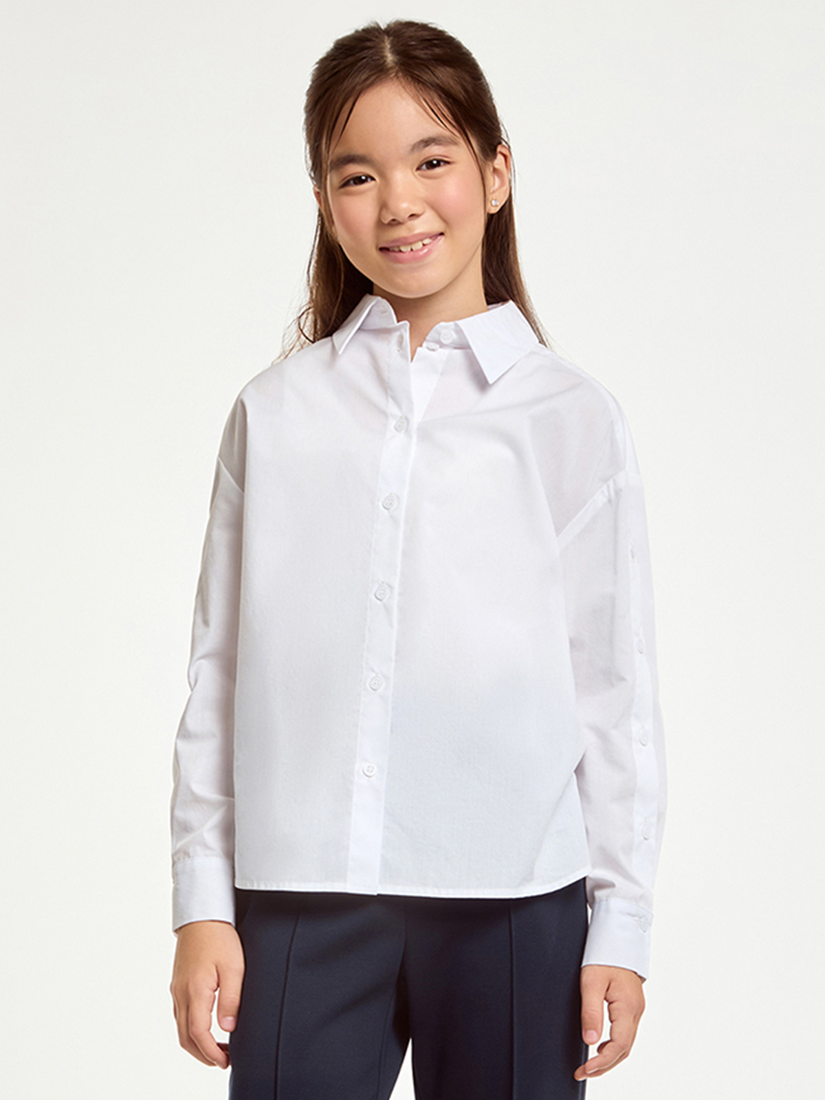 Недостающий пазл в гардеробе девочки — свободная белая блузка! Она выполнена из смесового хлопка. Высококачественный материал прекрасно дышит, держит форму и идеально подходит для образов на каждый день.