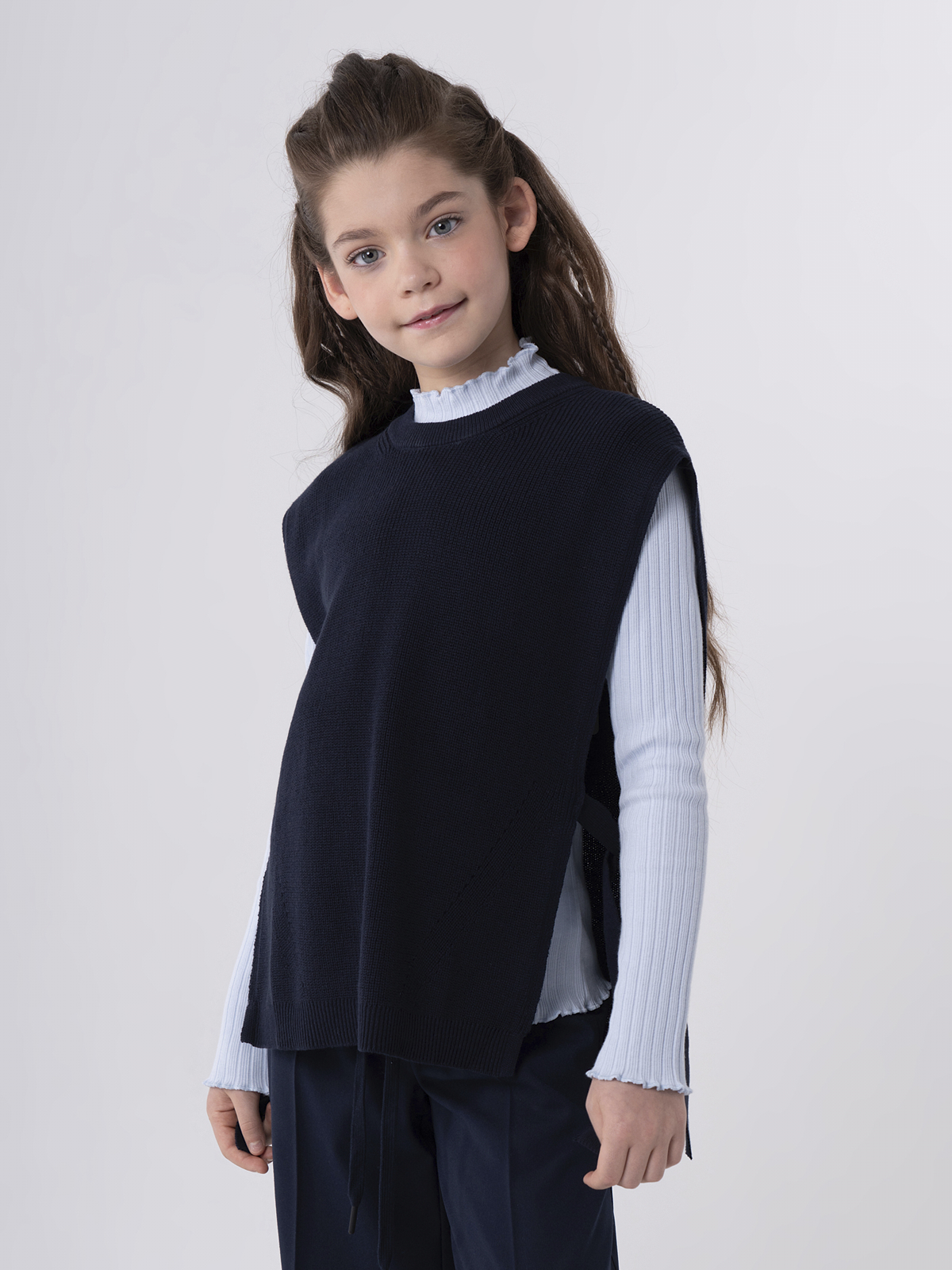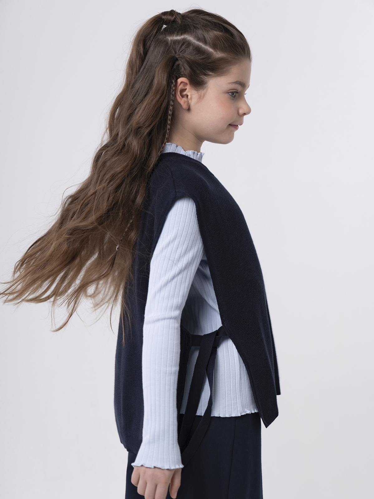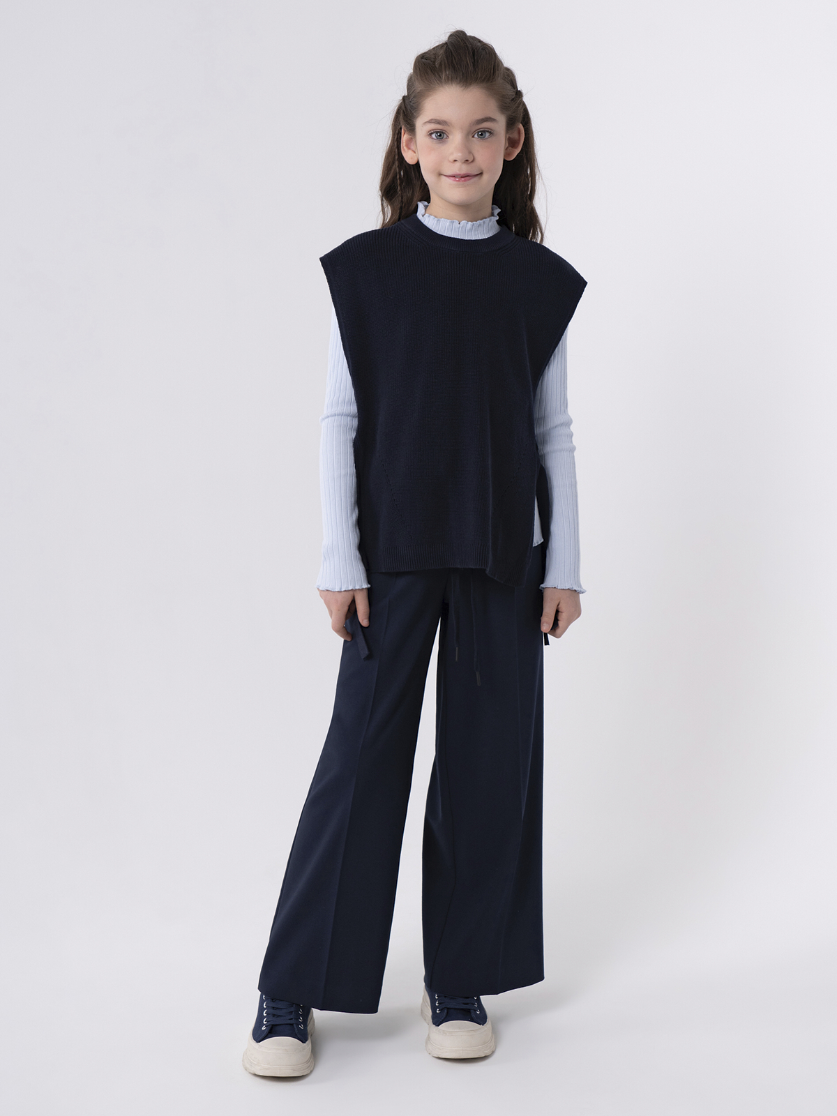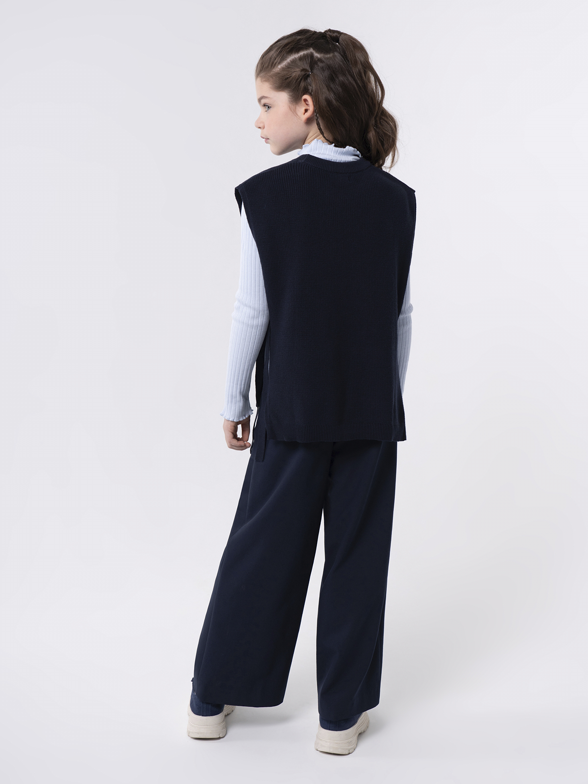 Удлиненный жилет из хлопка идеально впишется в повседневные школьные будни. Сегодня все любят оверсайз, поэтому широкая плечевая линия и силуэт безрукавки, доходящий до бедра, придётся как нельзя кстати в сочетании с брюками палаццо или расклешённой юбкой. Особо ценен жилет зимой, когда точно не помешает дополнительный тёплый слой в одежде.