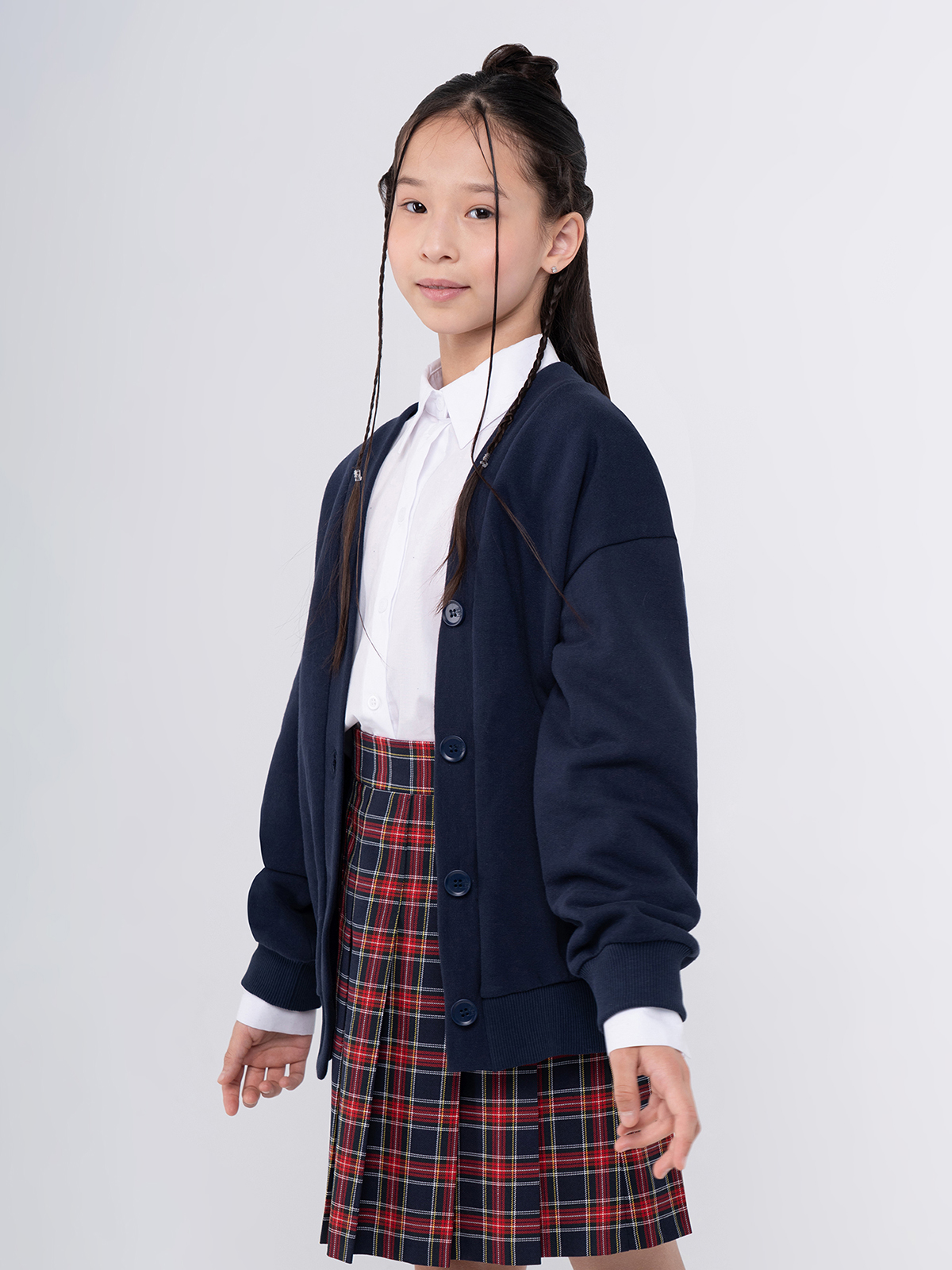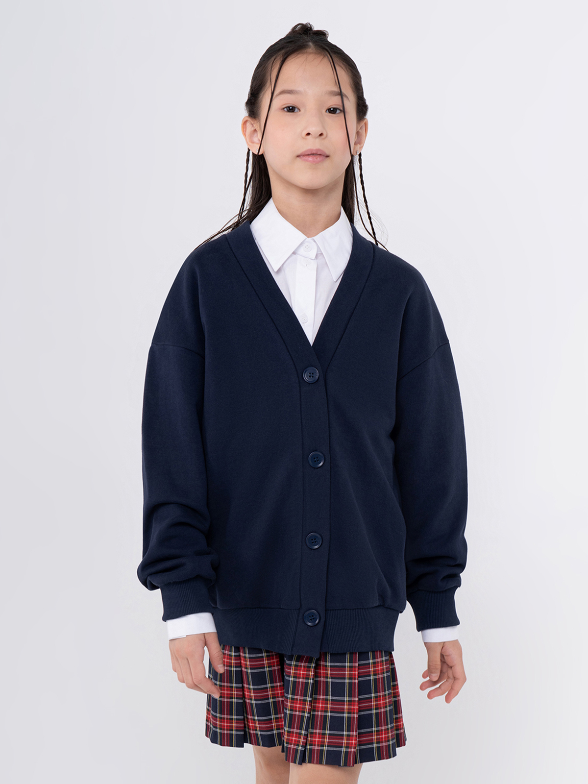 Жакет для девочек станет идеальным дополнением к школьному гардеробу.Оверсайз силуэт, дает комфорт и свободу движениям. Изготовленный из трикотажного полотна, жакет отличается мягкостью и приятной текстурой, что делает его подходящим для повседневного использования.Жакет прекрасно комбинируется с различными брюками или юбками, создавая элегантный и современный образ для учебы.