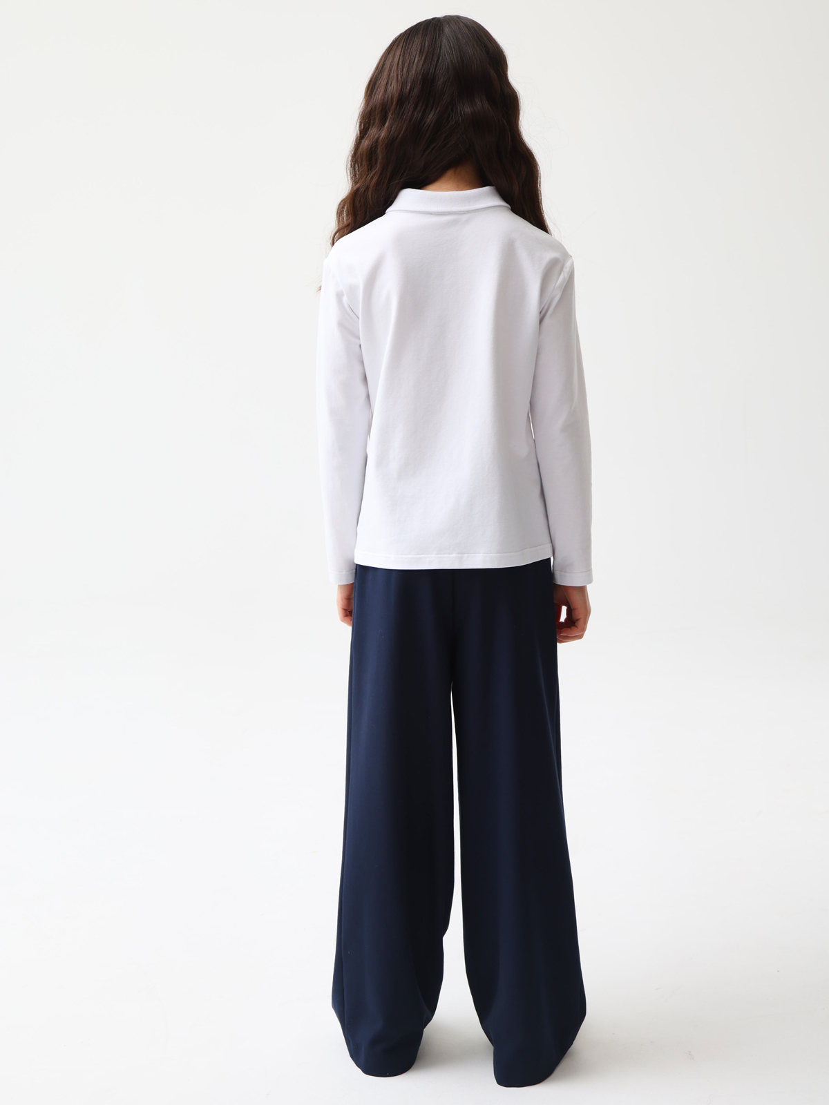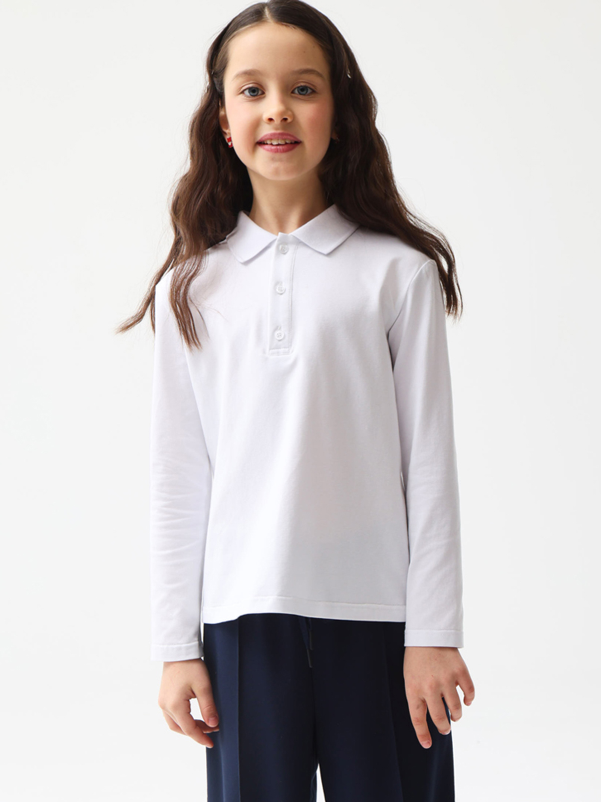 Базовое поло идеально подойдет для школы, создавая стильный и опрятный образ на каждый день. Полуприлегающий силуэт подчеркивает аккуратность кроя, обеспечивая комфорт в течение всего дня. Модель выполнена с длинными рукавами, что делает ее отличным выбором для прохладной погоды или учебных занятий в помещении.