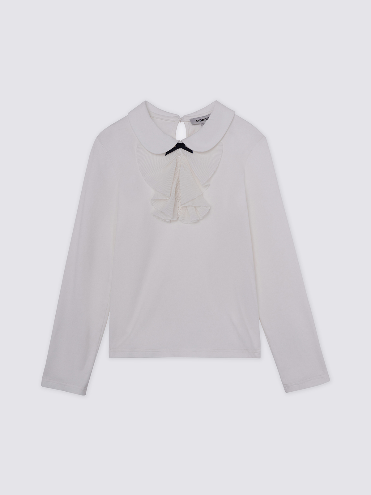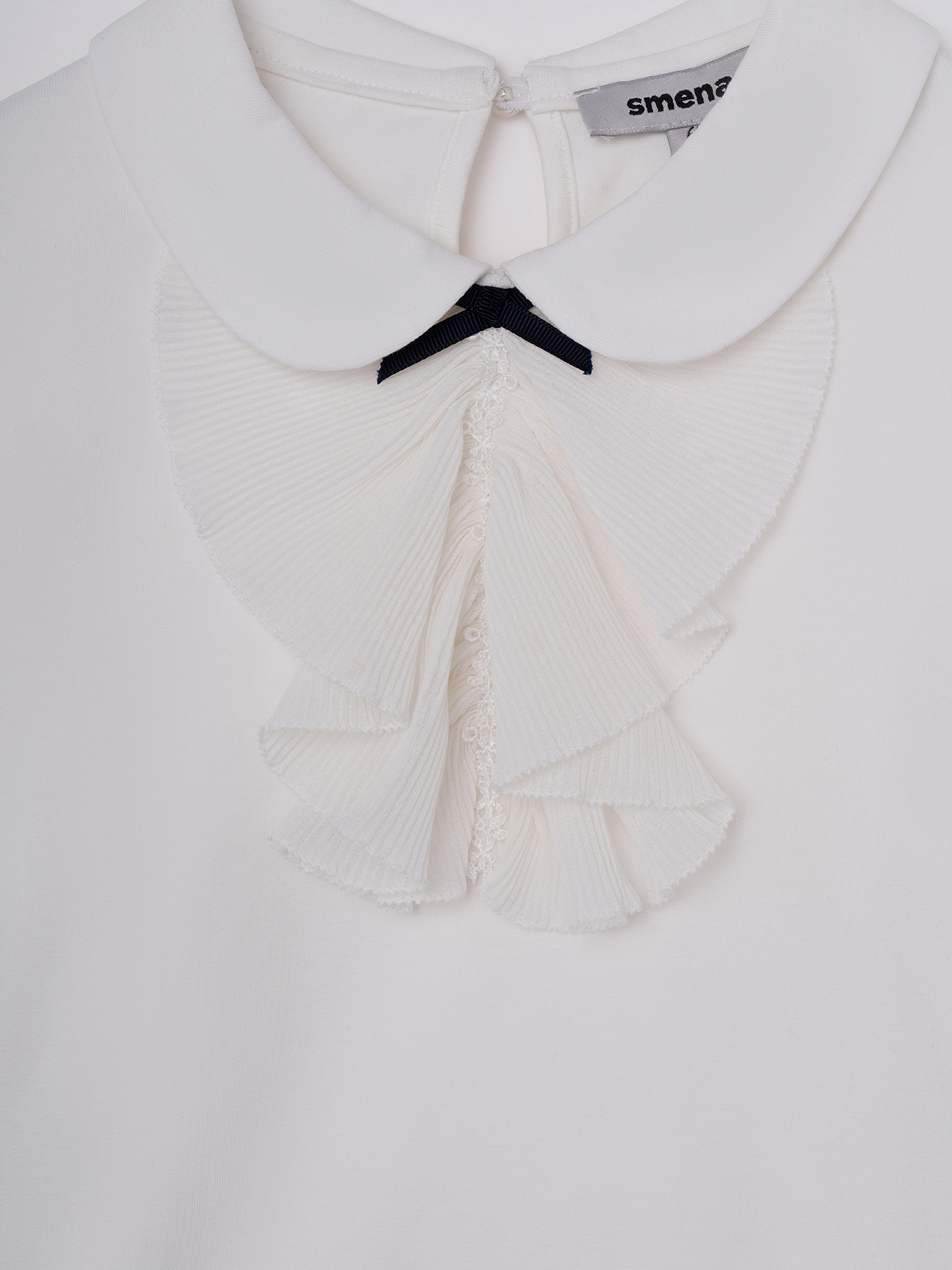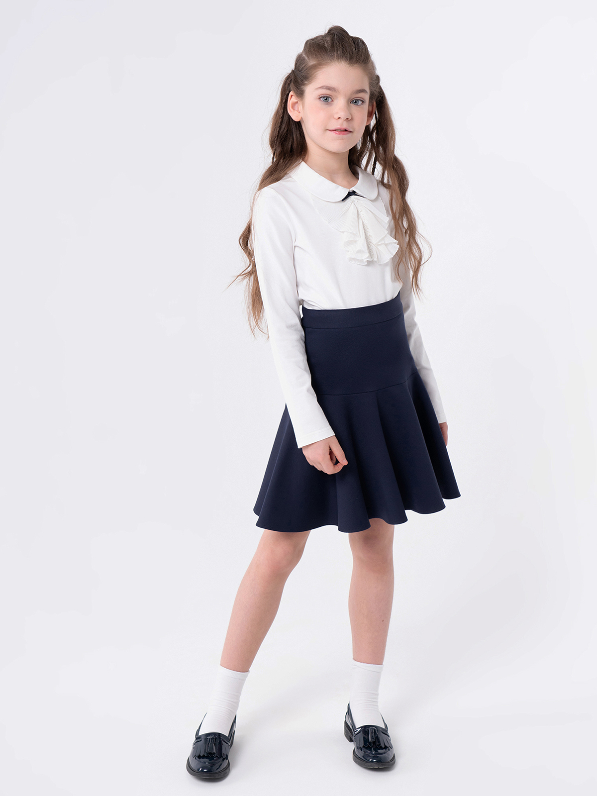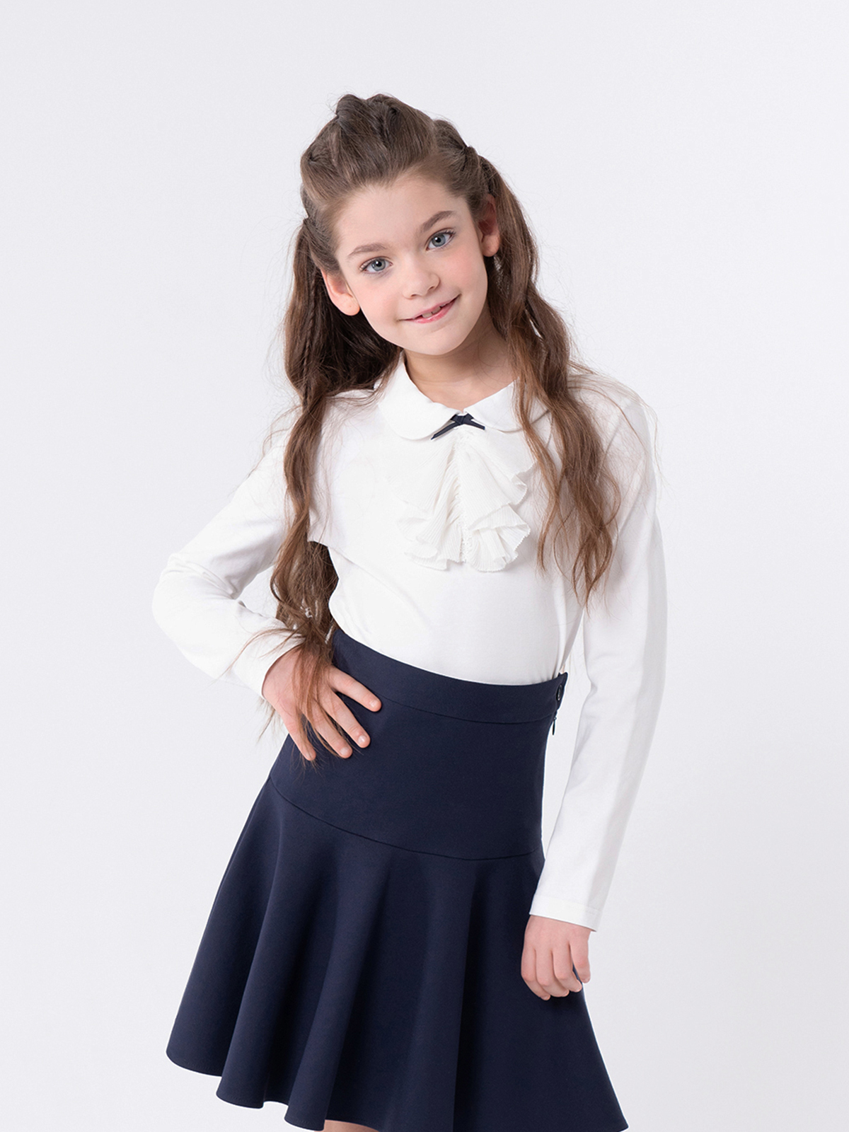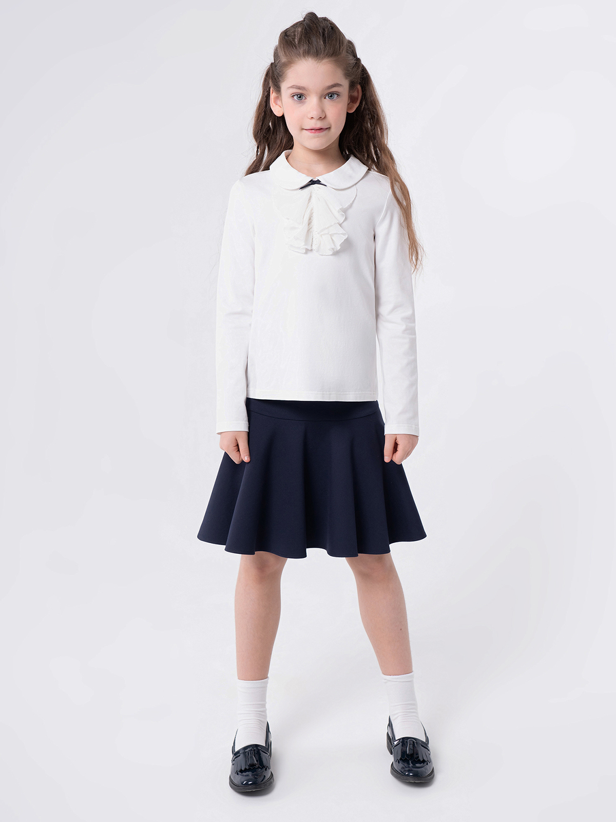 Стильный джемпер для девочек идеально подойдет для школы и создаст аккуратный и элегантный образ. Изготовлен из мягкого трикотажного полотна, что обеспечивает комфорт и удобство при носке в течение всего дня. Особое внимание привлекает оригинальная деталь — декоративное «жабо», выполненное по центру .