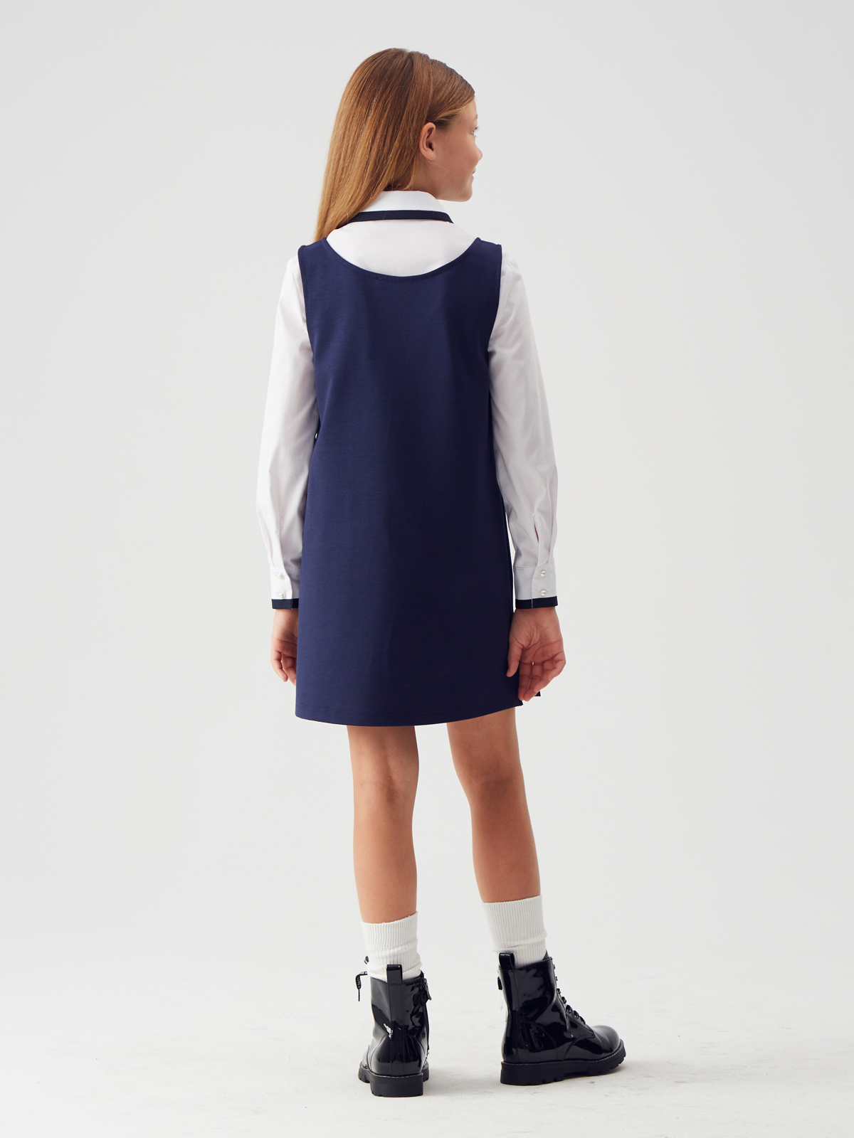 Модель выполнена из трикотажного полотна, что обеспечивает мягкость и удобство при носке. Отсутствие застежки делает его практичным и легким в использовании. Спинка состоит из двух деталей со средним швом, что подчеркивает аккуратный крой и элегантный внешний вид. Фигурный вырез горловины добавляет оригинальности и утонченности дизайну. В боковых швах предусмотрены карманы, которые станут полезным дополнением для хранения мелочей или просто для удобства.