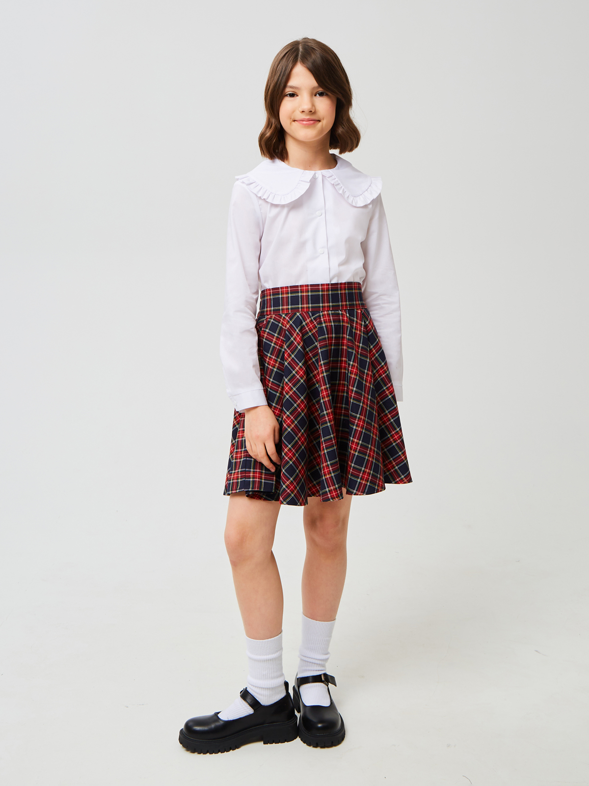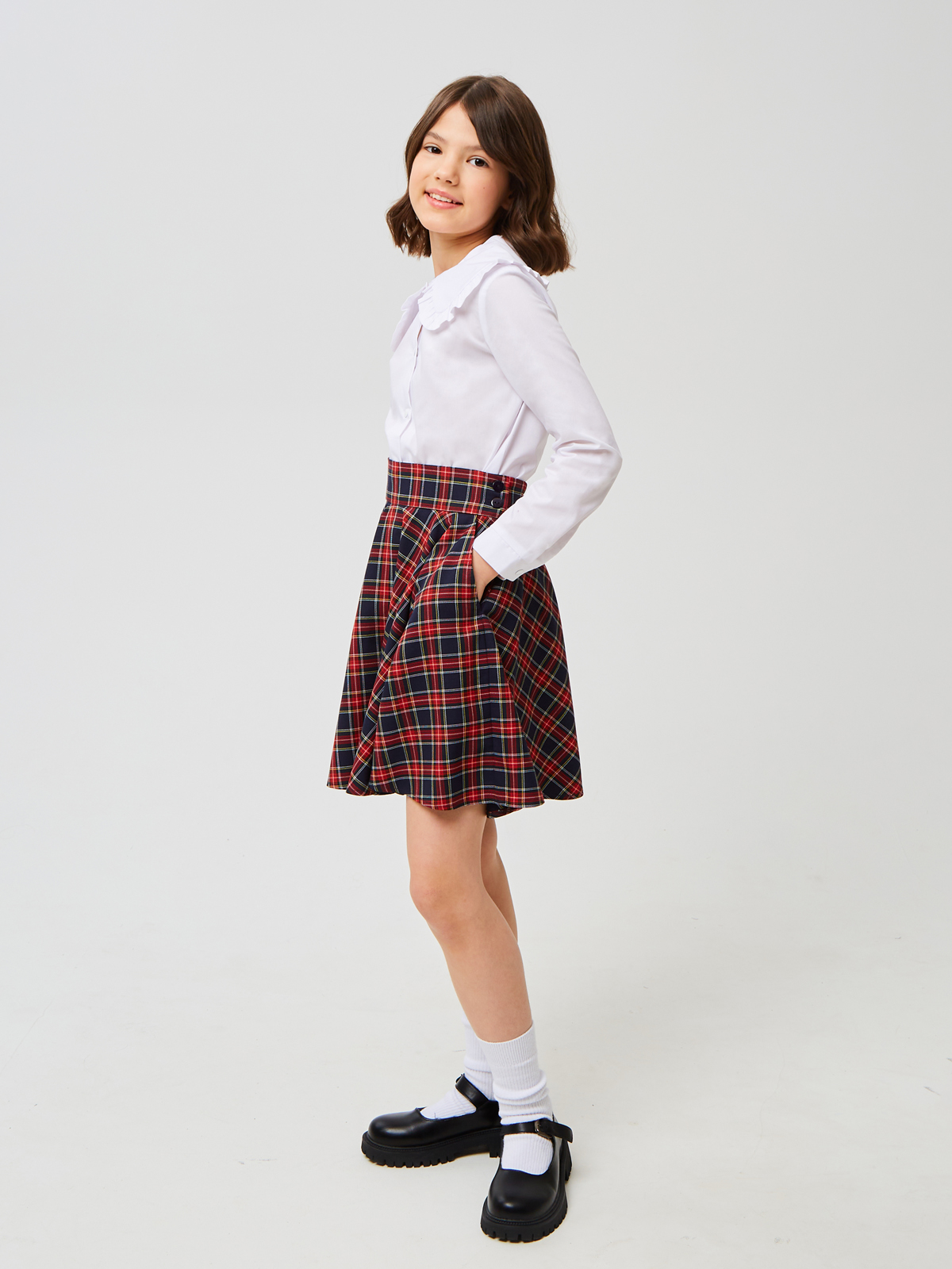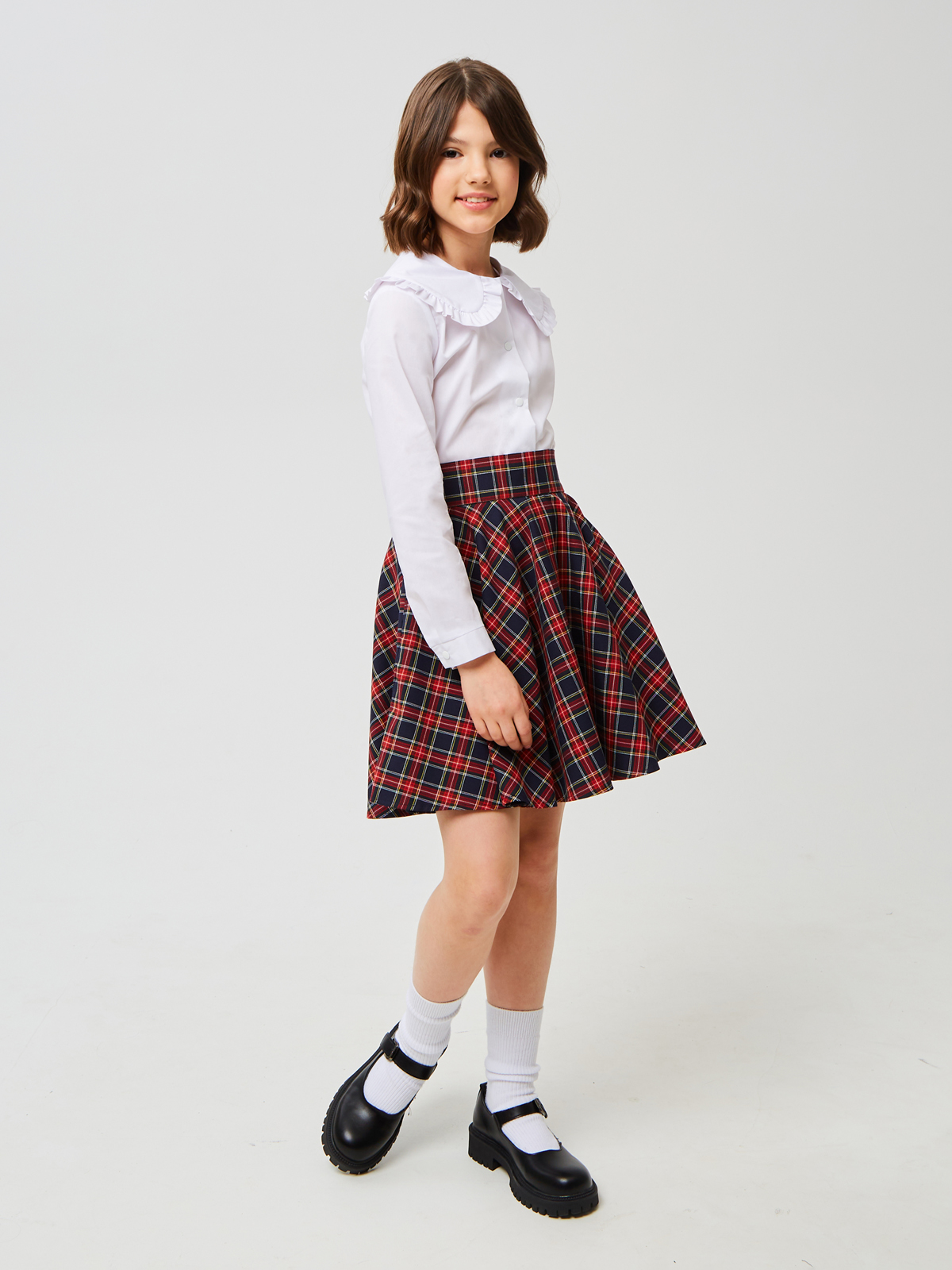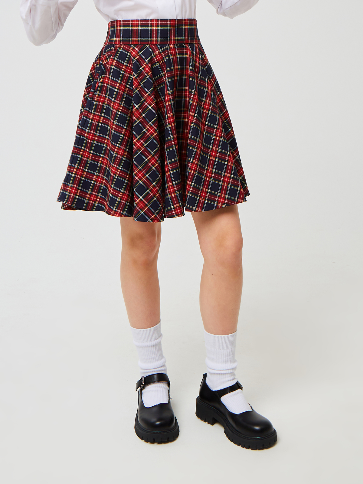 Изящная юбка-солнце для девочки из износостойкой поливискозы с добавлением эластичных волокон, обеспечивающих комфорт в движении. Застёгивается на потайную молнию в боковом шве и две пуговицы на втачном поясе.Пояс с регулируемой резинкой обеспечивает удобную посадку и комфорт в ежедневной носке. Благодаря свойствам ткани юбка отлично держит форму. Длина - чуть выше колена. Отличный вариант на каждый день.