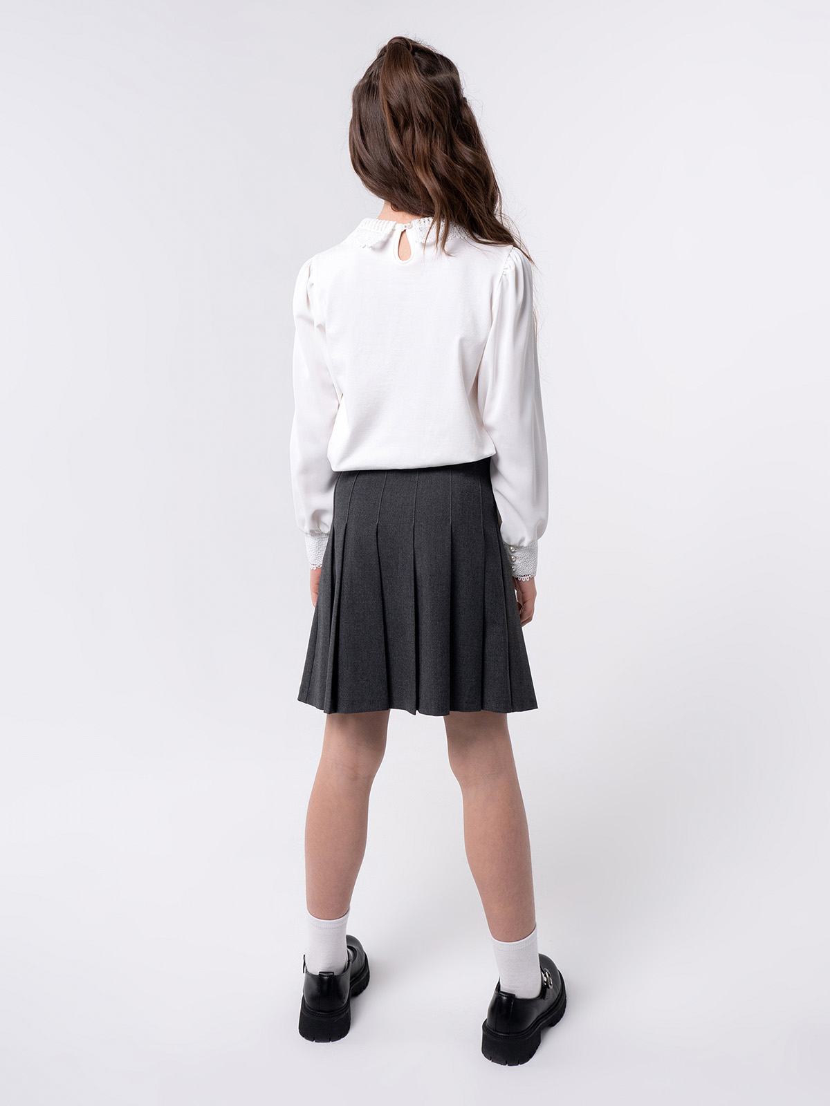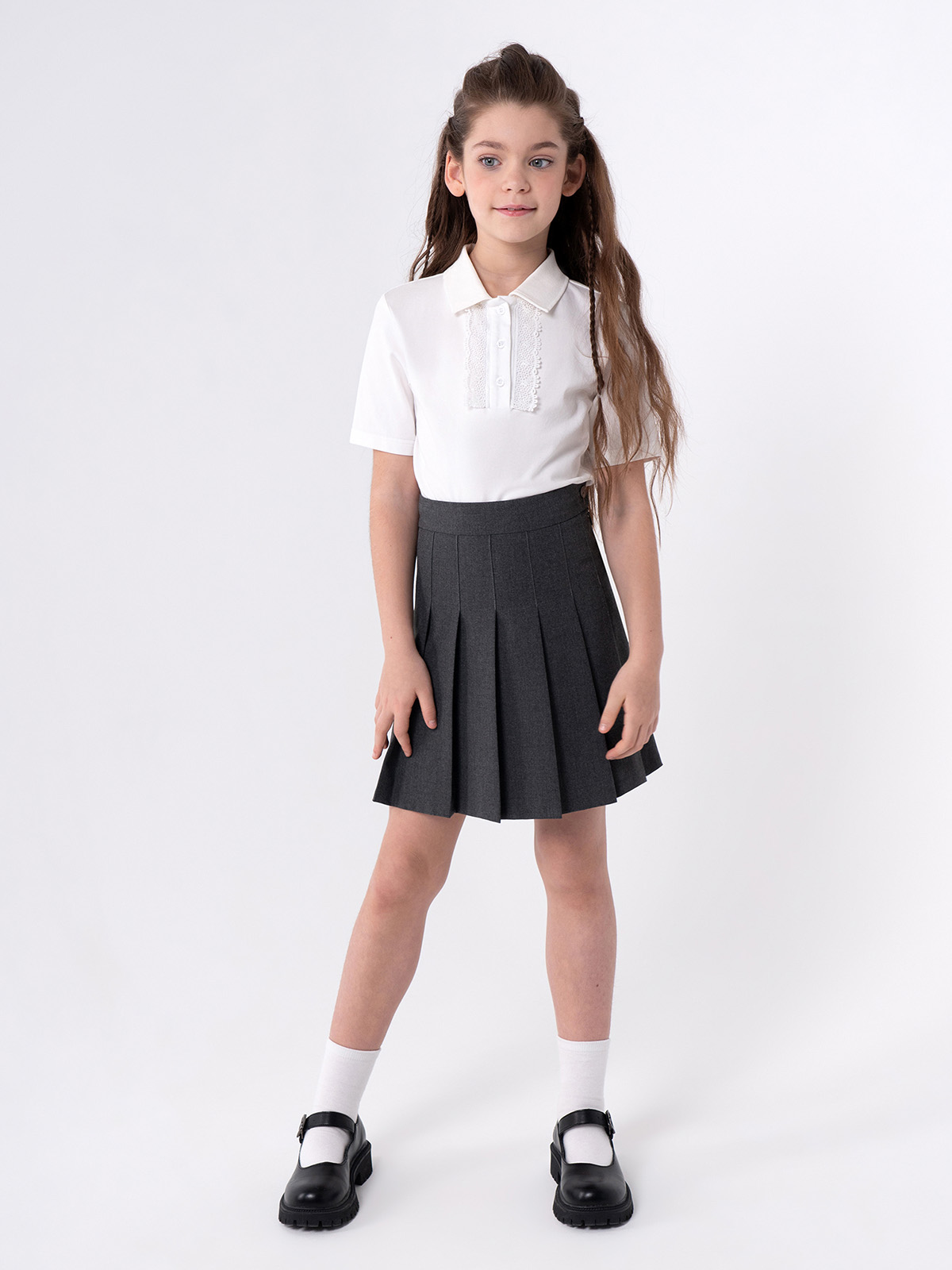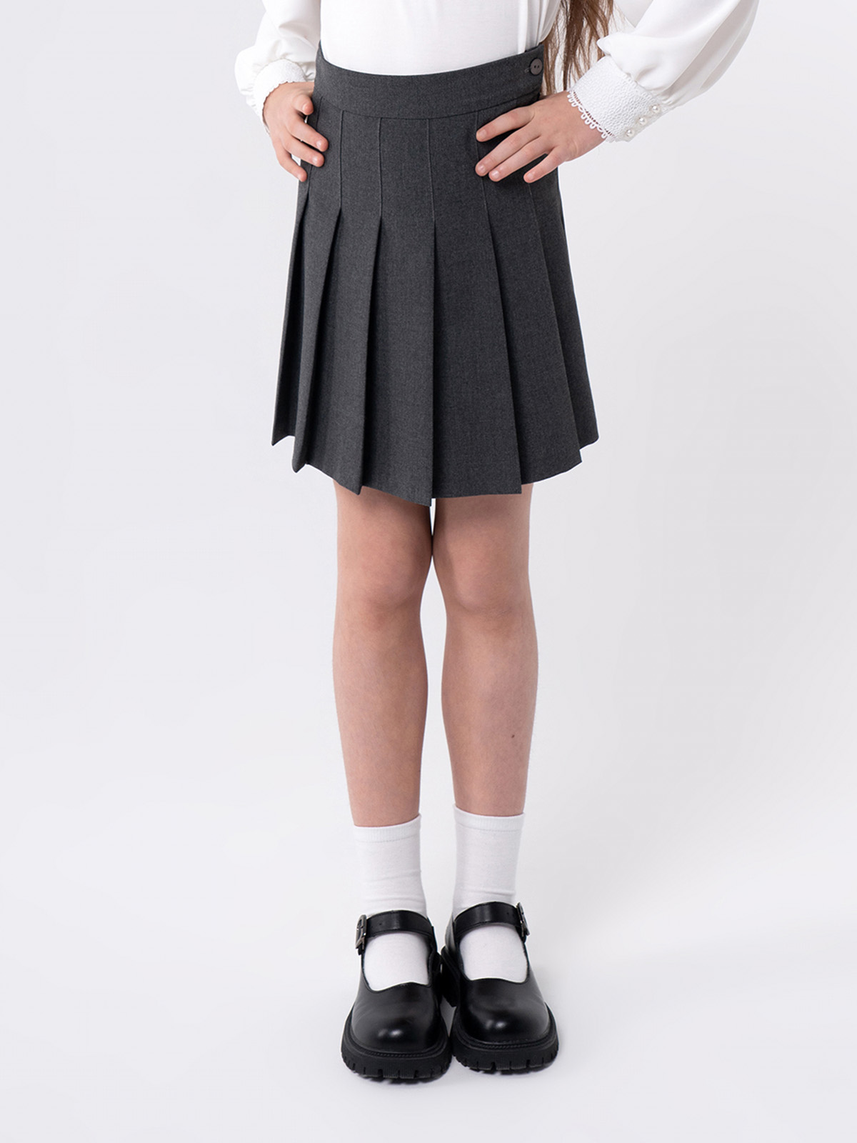 Элегантная юбка тенниска в складку, из износостойкой и устойчивой к смятию поливискозы. Складки частично застрочены Застёгивается на потайную молнию в боковом шве и пуговицу на втачном поясе. Пояс с регулируемой резинкой обеспечивает удобную посадку и комфорт в ежедневной носке. Эластичные волокна в составе обеспечивают комфорт в движении.
