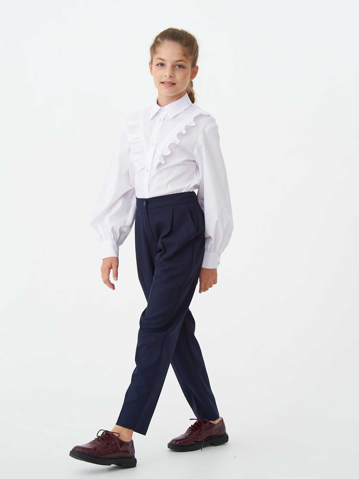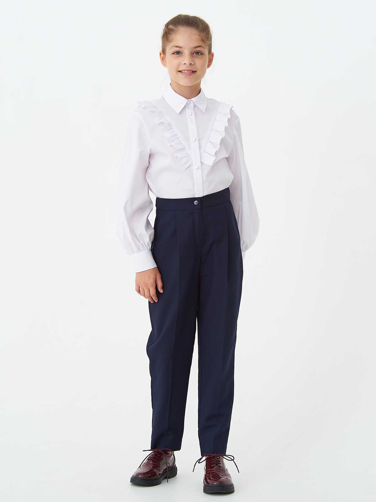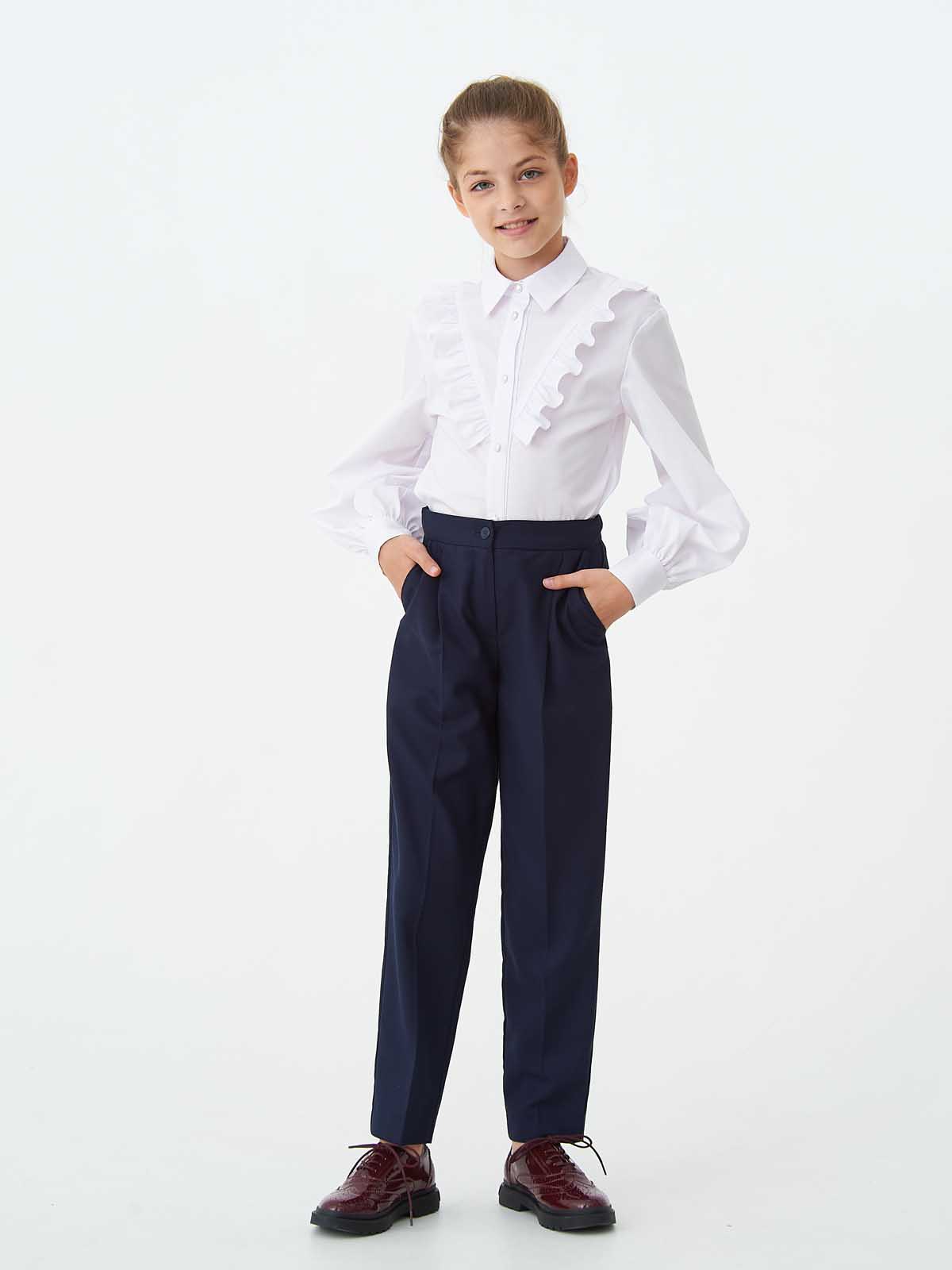 "Элегантные брюки для девочки из приятной на ощупь поливискозы с повышенной износостойкостью зауженные к низу, на втачном поясе с пуговицей. Задняя часть пояса на резинке. Брюки будут прекрасным дополнением к моделям из школьной коллекций SMENA, отличный вариант на каждый день.