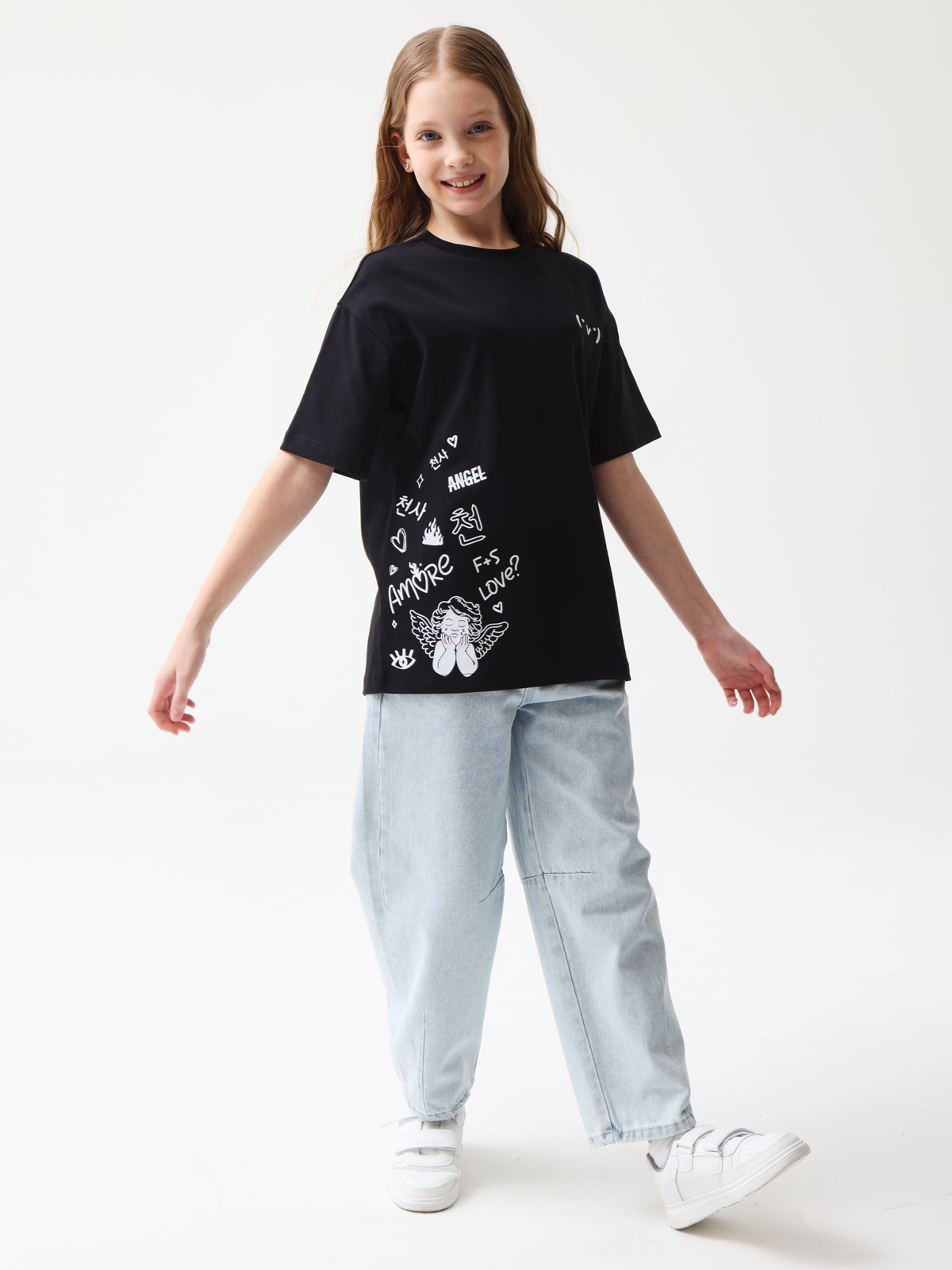 Футболка оверсайз силуэта с яркимпринтом в трендовой эстетике «кавайи» (с яп. «милый»). Мягкий трикотаж из 100% хлопка. Свободный крой со спущенным плечом. Круглый вырез горловины и короткий рукав. Популярный крой оверсайз и спущенная линия плеч позволяет чувствовать себя свободно.