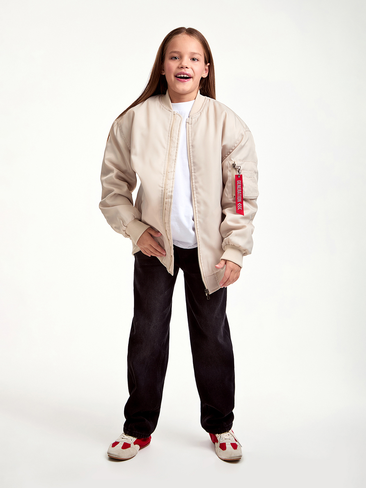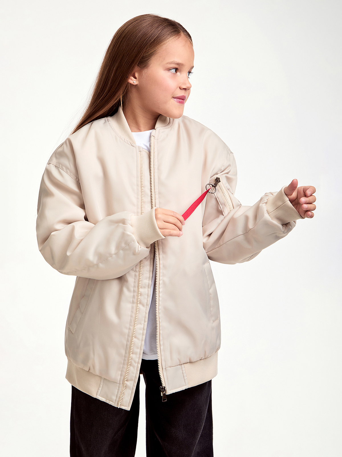 Демисезонная куртка-бомбер для девочки.Модель выполнена из курточной ткани со специальной обработкой. Свободный силуэт, спущенная линия плеча,ветровлагозащитная ткань, куртка создана для максимального комфорта. Куртка прекрасно сочетается с джинсами, классическими, спортивными брюками.