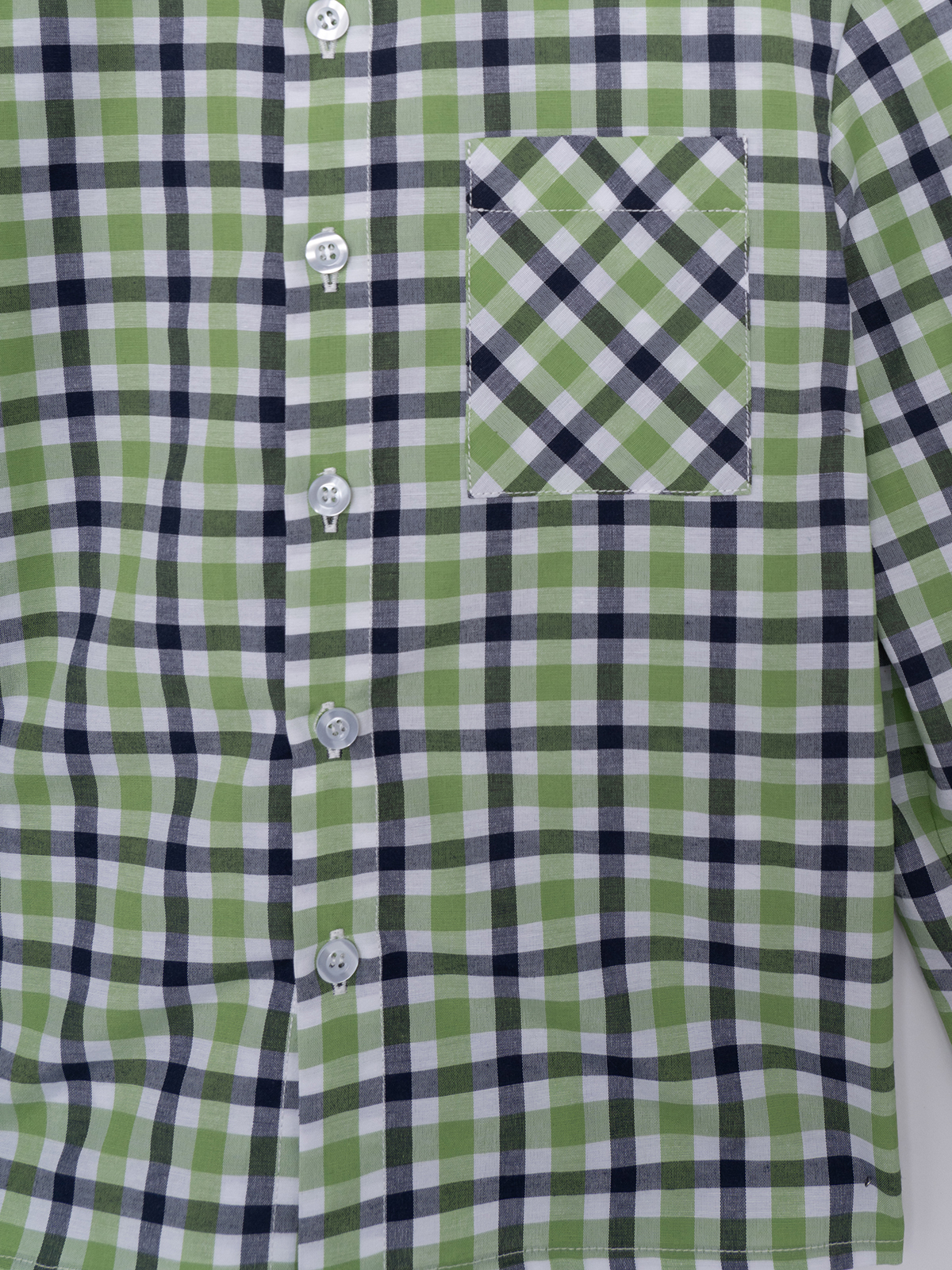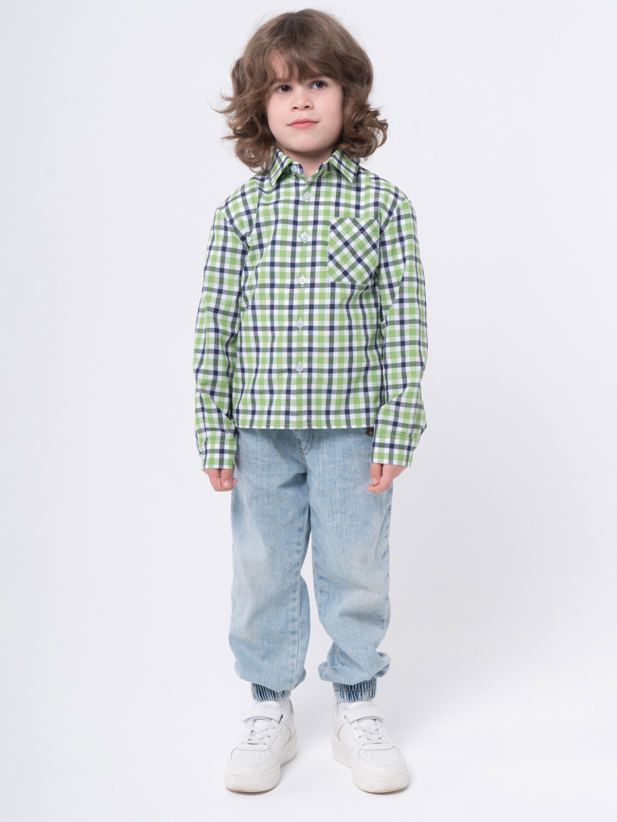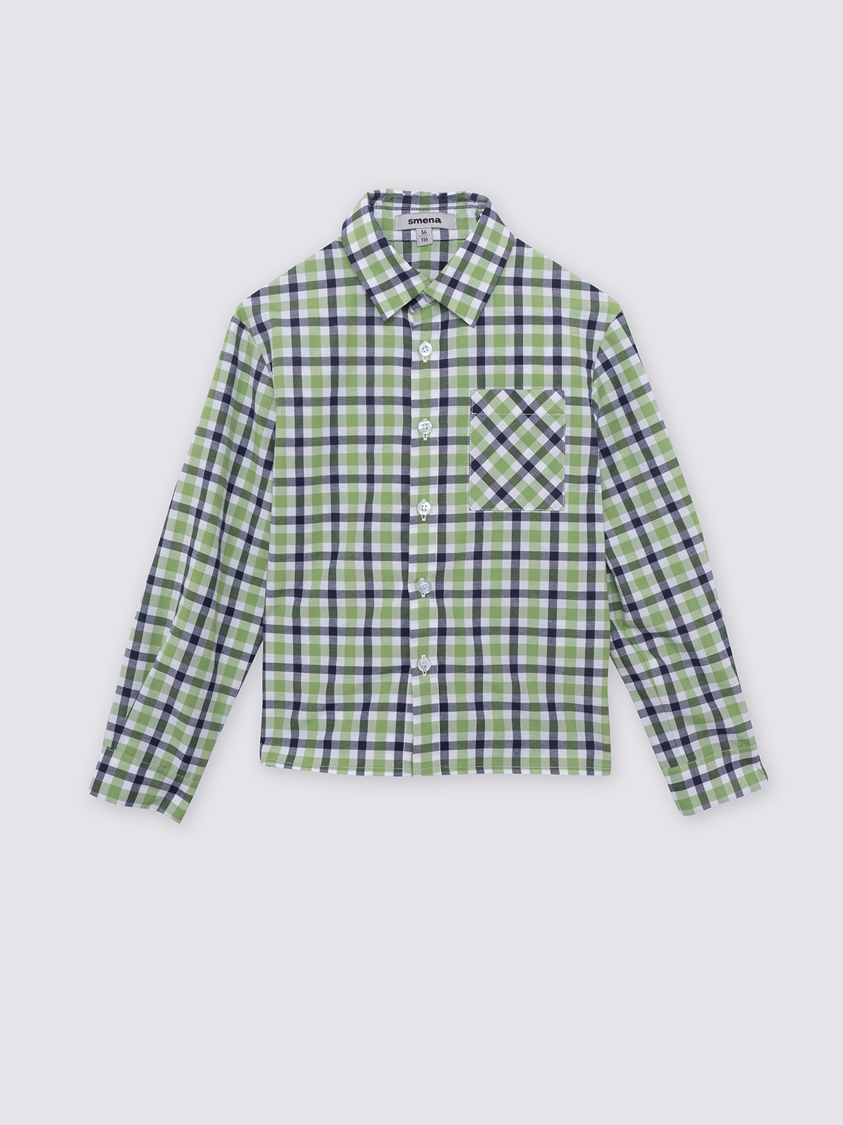 Клетчатая рубашка из смесового хлопка с отложным воротником на стойке и длинными рукавами. Высокое содержание хлопка в составе обеспечивает отличную воздухопроницаемость и комфорт в повседневной носке. Левая сторона полочки дополнена накладным карманом. Застежка центральная на планку с пуговицами. Блузка будет прекрасным дополнением к моделям из весенней коллекции SMENA.