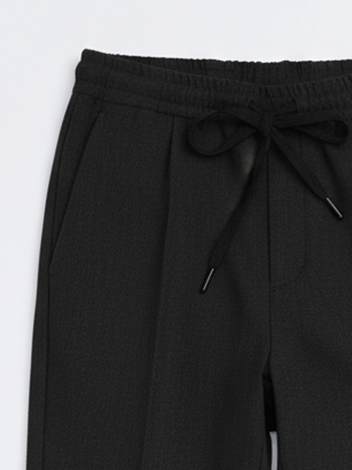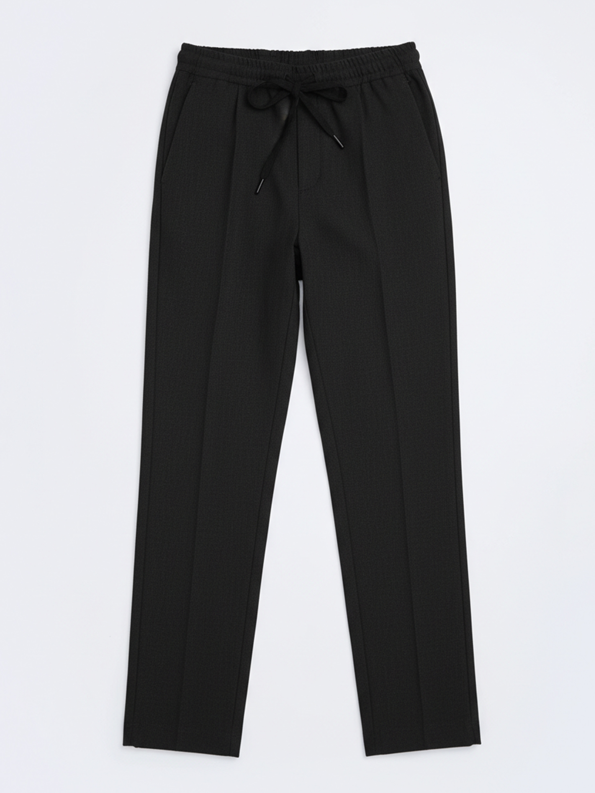 Боковые карманы добавляют функциональности и удобства. Заутюженные «стрелки» на передних половинках придают аккуратный вид, а складка возле шва притачивания пояса делает модель еще более стильной. Средний шов переходит в отстрочку гульфика с имитацией застежки, что добавляет интересный акцент к общему облику.