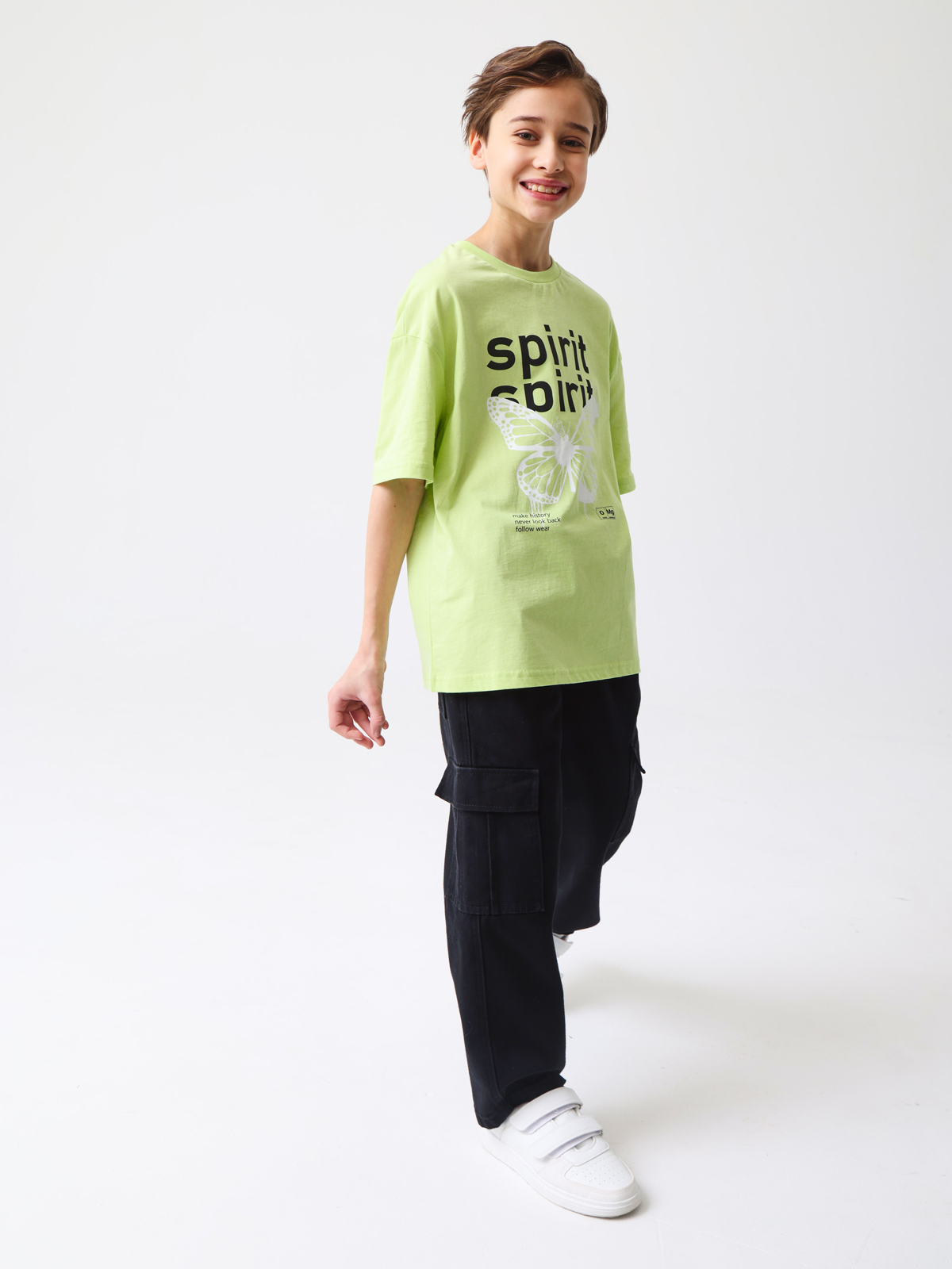 Трендовая футболка для мальчиков с принтом. Молодежная длинная футболка со спущенным плечом сшита из хлопковой ткани кулирка. Не мнется и подходит для активного отдыха. Дополнена ярким принтом со стильной надписью. Благодаря воздухопроницаемости это идеальный вариант на лето и теплую осень. Представлена в 3 расцветках.