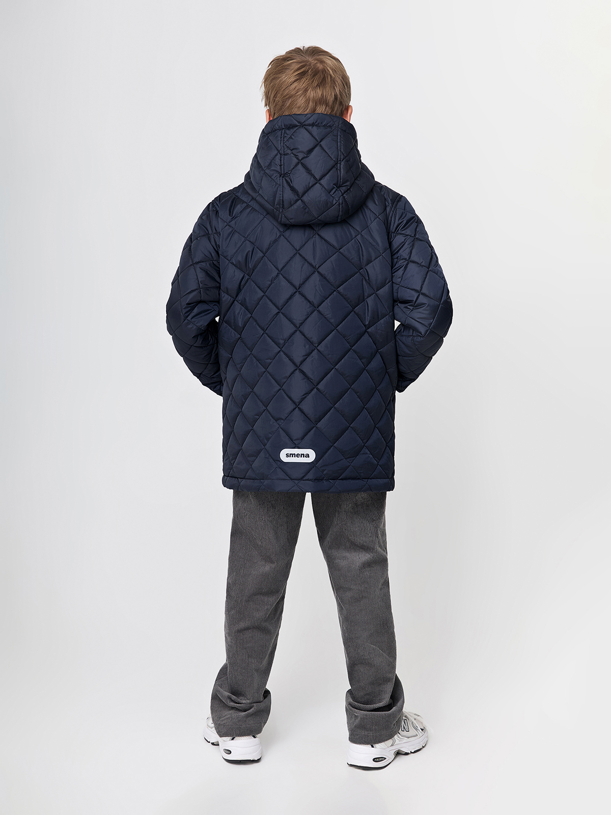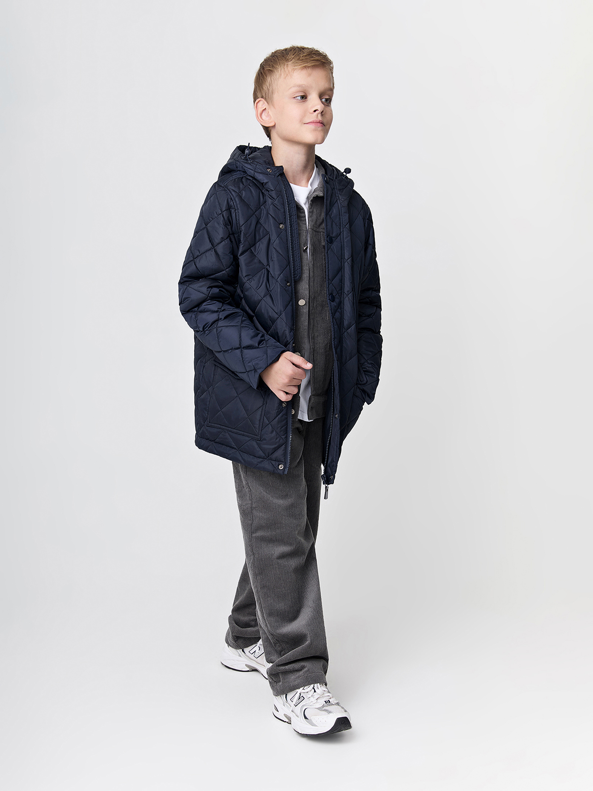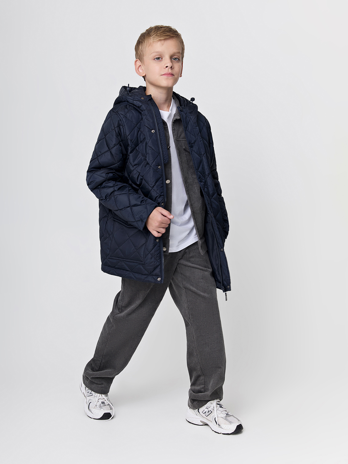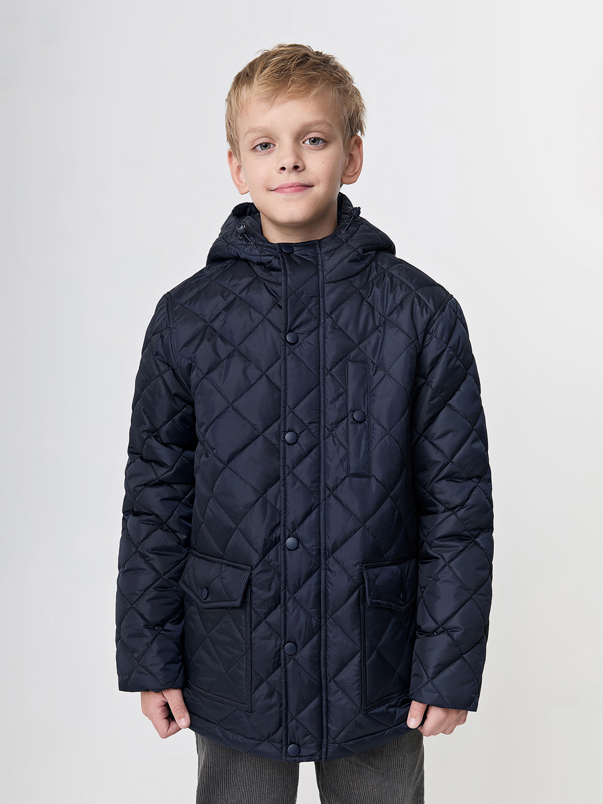 Стеганая куртка объемного прямого силуэта с капюшоном. Вшитый капюшон, воротник-стойка, застежка-молния, ветрозащитная планка на кнопках и накладные карманы в районе талии – это особенности данной модели. Куртка идеально впишется в любой гардероб. Рекомендованный температурный режим: +10/-5 градусов. Представлено в двух цветах – бежевый и темно-синий . Размерный ряд 128 – 170 см.