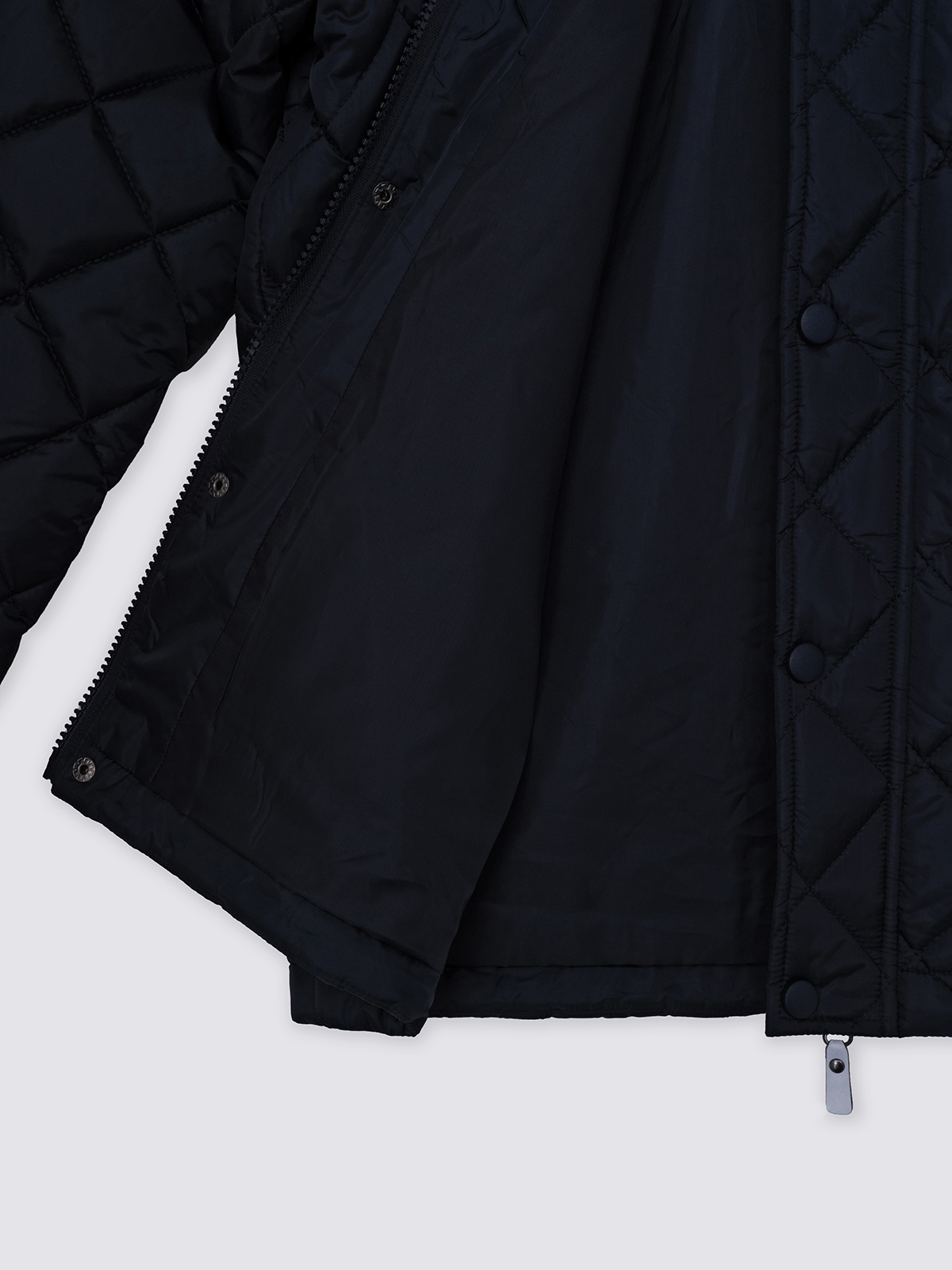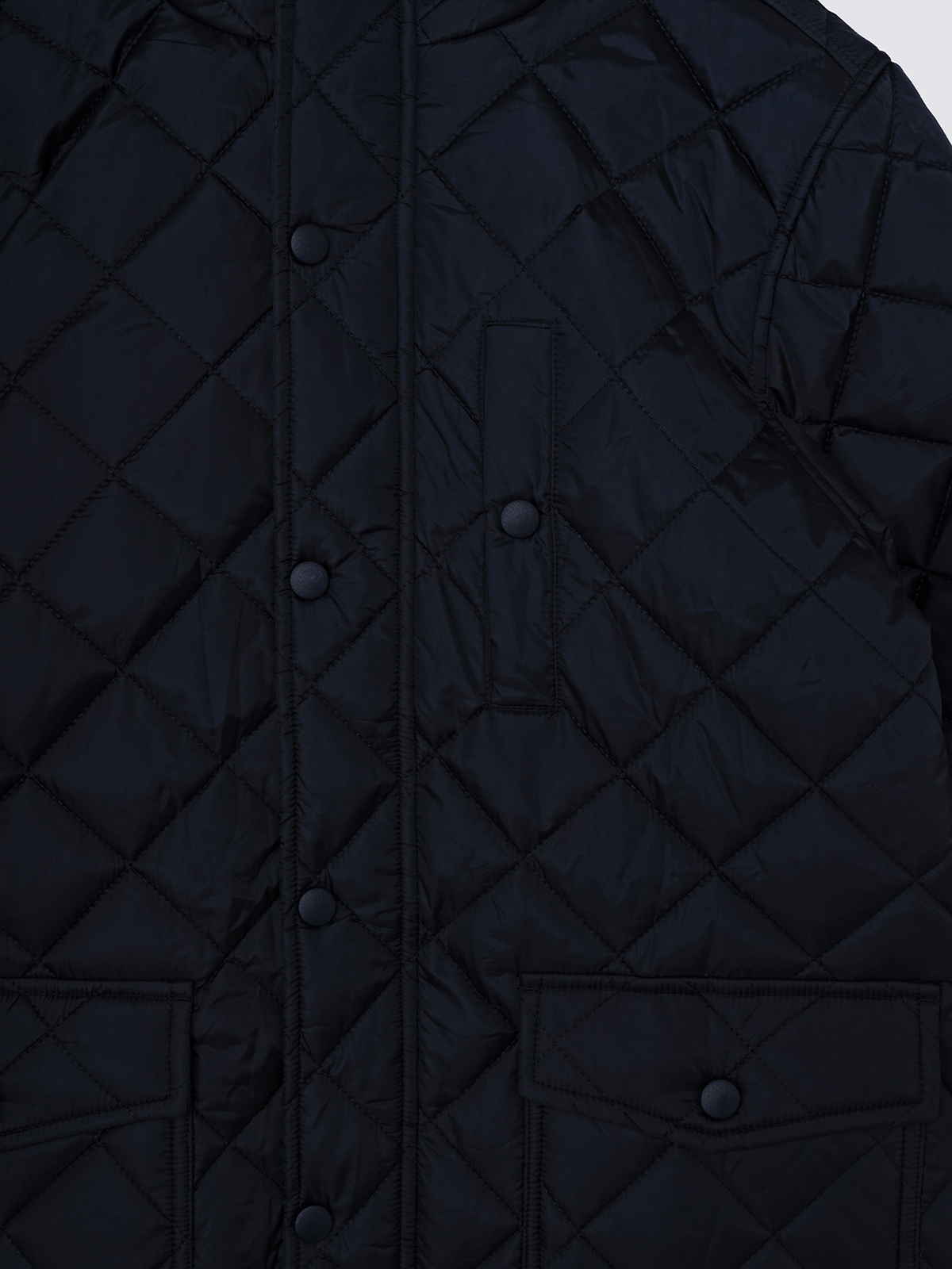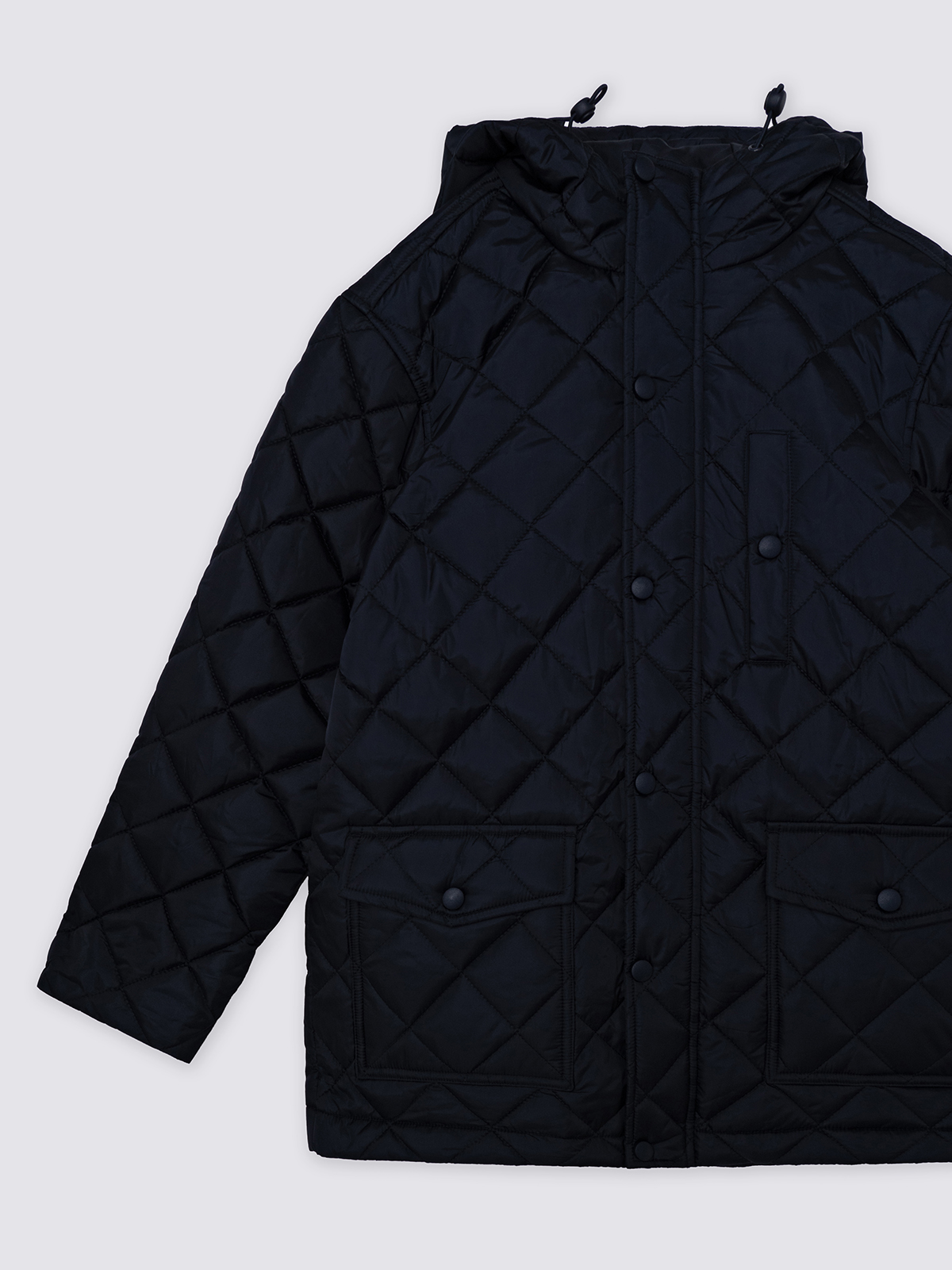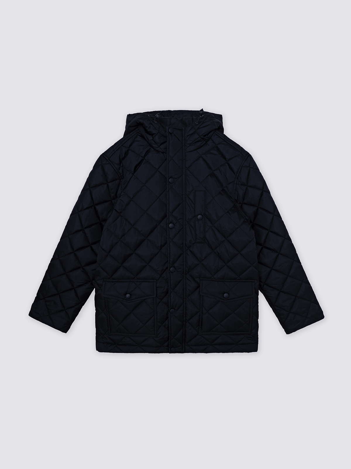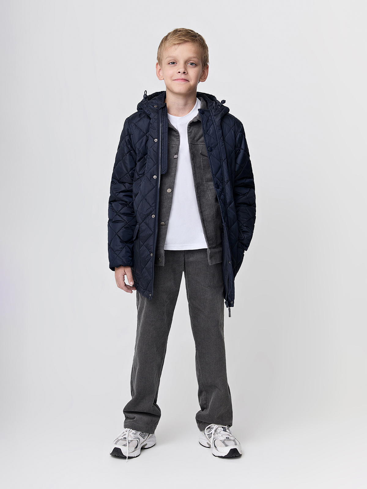 Стеганая куртка объемного прямого силуэта с капюшоном. Вшитый капюшон, воротник-стойка, застежка-молния, ветрозащитная планка на кнопках и накладные карманы в районе талии – это особенности данной модели. Куртка идеально впишется в любой гардероб. Рекомендованный температурный режим: +10/-5 градусов. Представлено в двух цветах – бежевый и темно-синий . Размерный ряд 128 – 170 см.