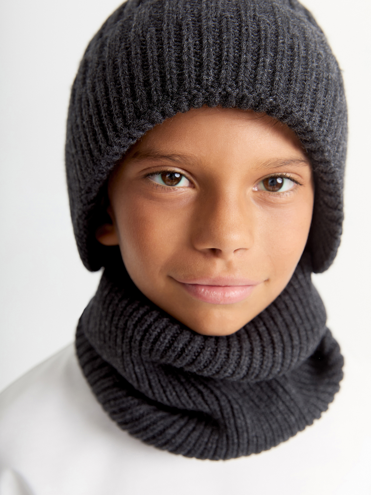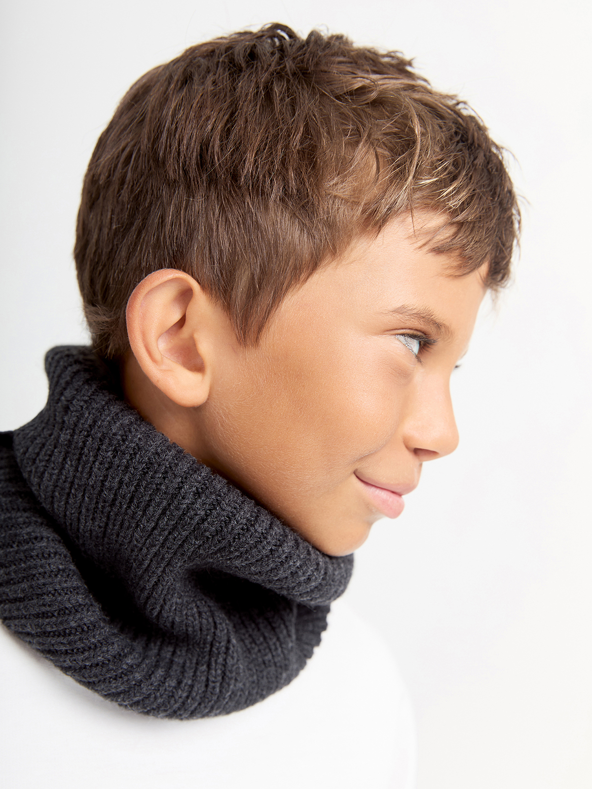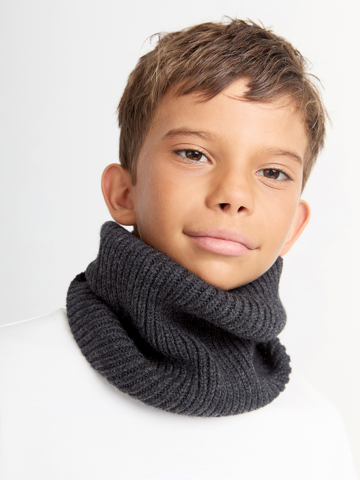 Снуд можно носить как на шее, так и на голове. Он будет отлично смотреться с любой одеждой и подойдет как мальчикам, так и девочкам.
