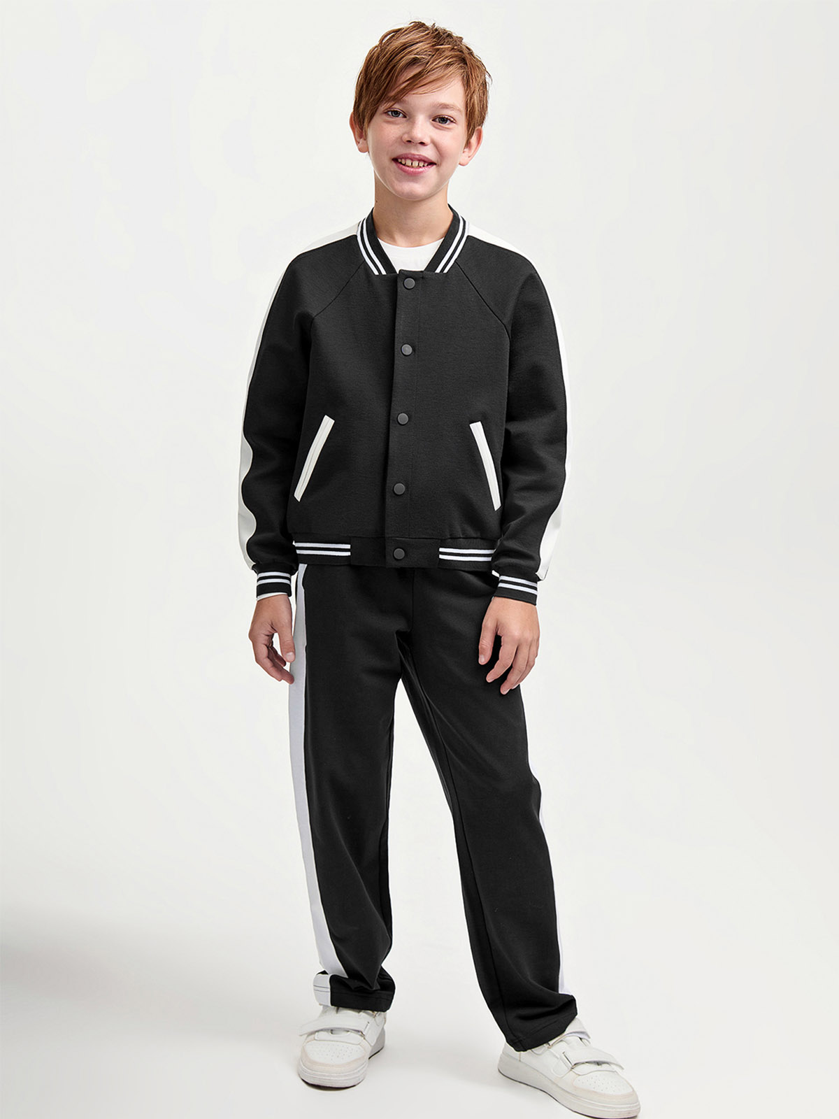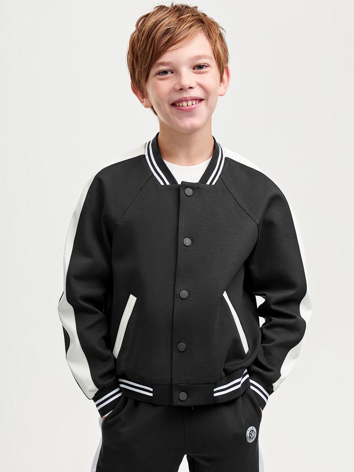 Стильный и практичный бомбер с лампасами идеально подойдет для школы. Изготовлен из 100% хлопка, что обеспечивает комфорт и натуральность материала. Застежка на кнопках делает его удобным в использовании, а карманы с контрастными вставками добавляют оригинальности и функциональности. Универсальный дизайн позволяет легко сочетать изделие с повседневной одеждой. Этот верхний слой станет отличным решением для прохладной погоды благодаря мягкой ткани и продуманным деталям. Представлен в спокойных оттенках, которые подойдут для различных образов и ситуаций. Привлекательные лампасы добавляют динамики, делая модель модной и современной. Подходит для учебных будней или прогулок, сохраняя стиль и удобство каждый день.